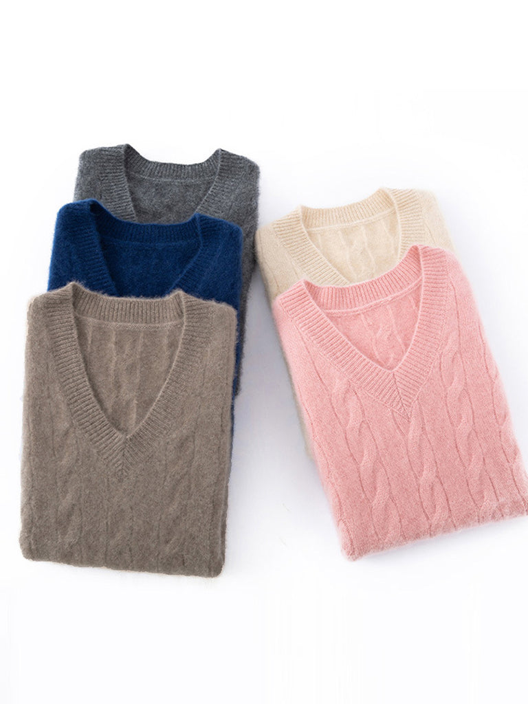 Women Autumn Casual Pure Color V-Neck Knitted Vest