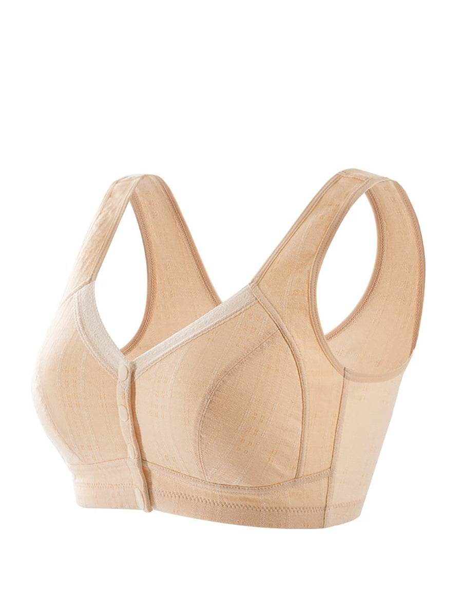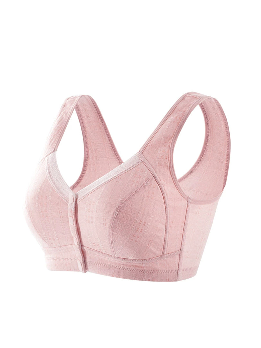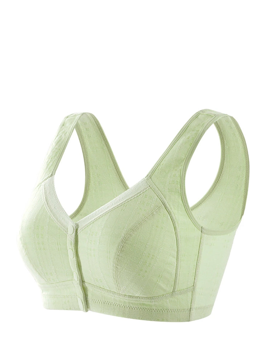 Women Casual Pure Color Front-buckle Wireless Bra