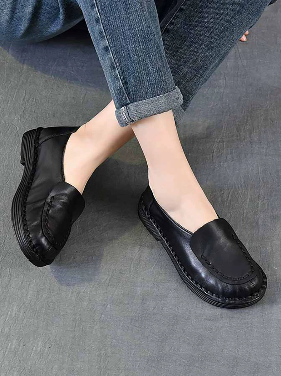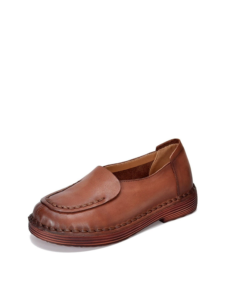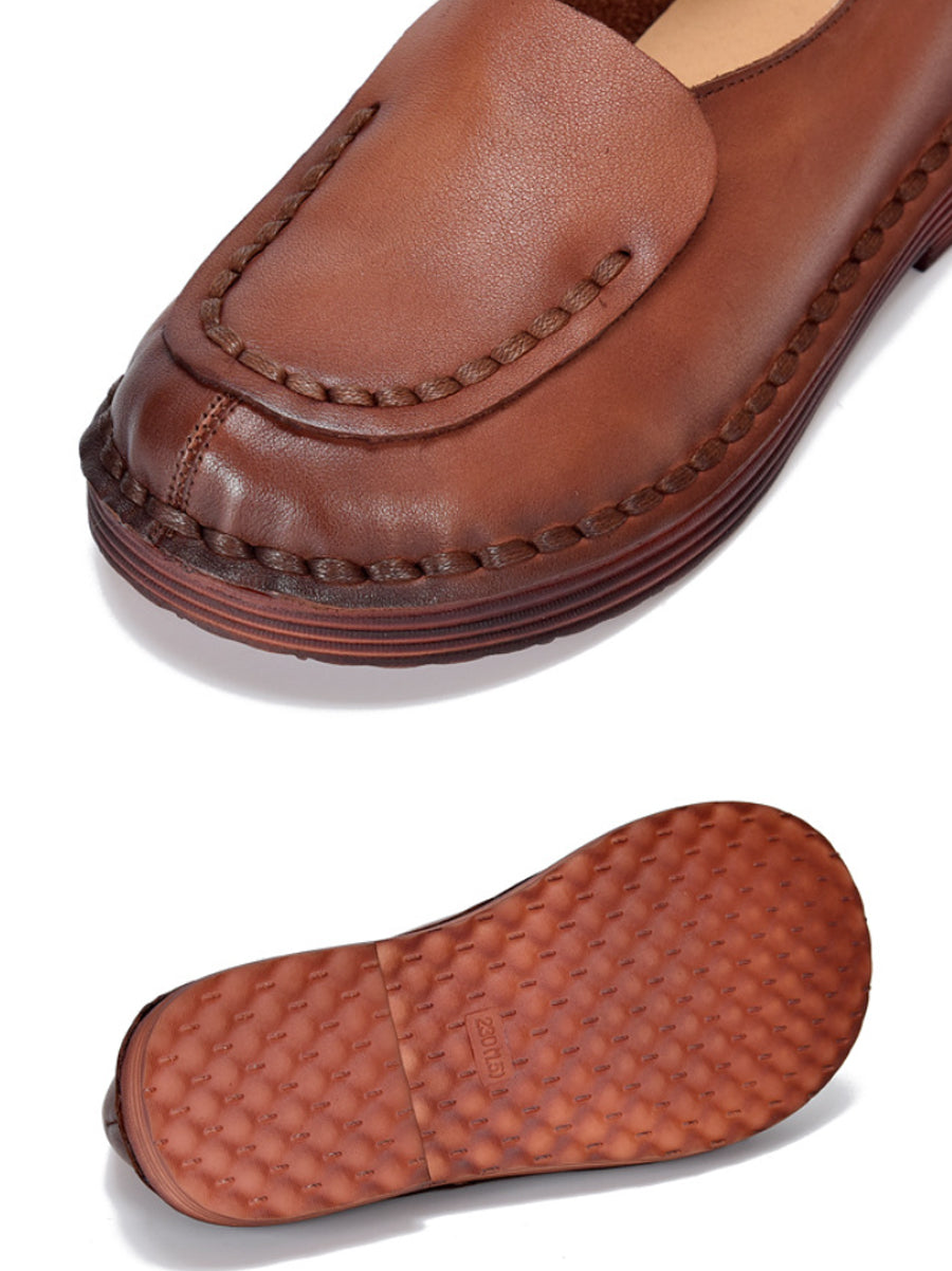 Women Spring Retro Genuine Leather Spliced Low Heel Shoes