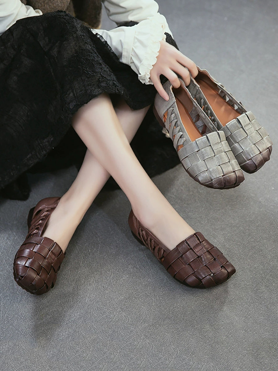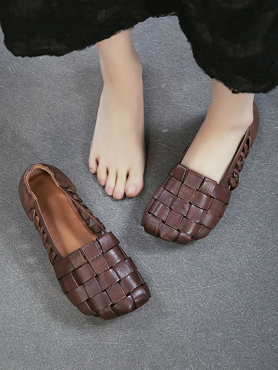 Women Summer Leather Weave Low Heel Sandals