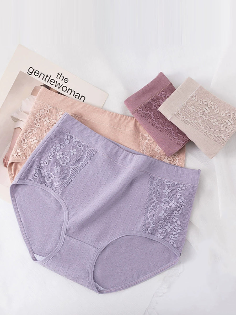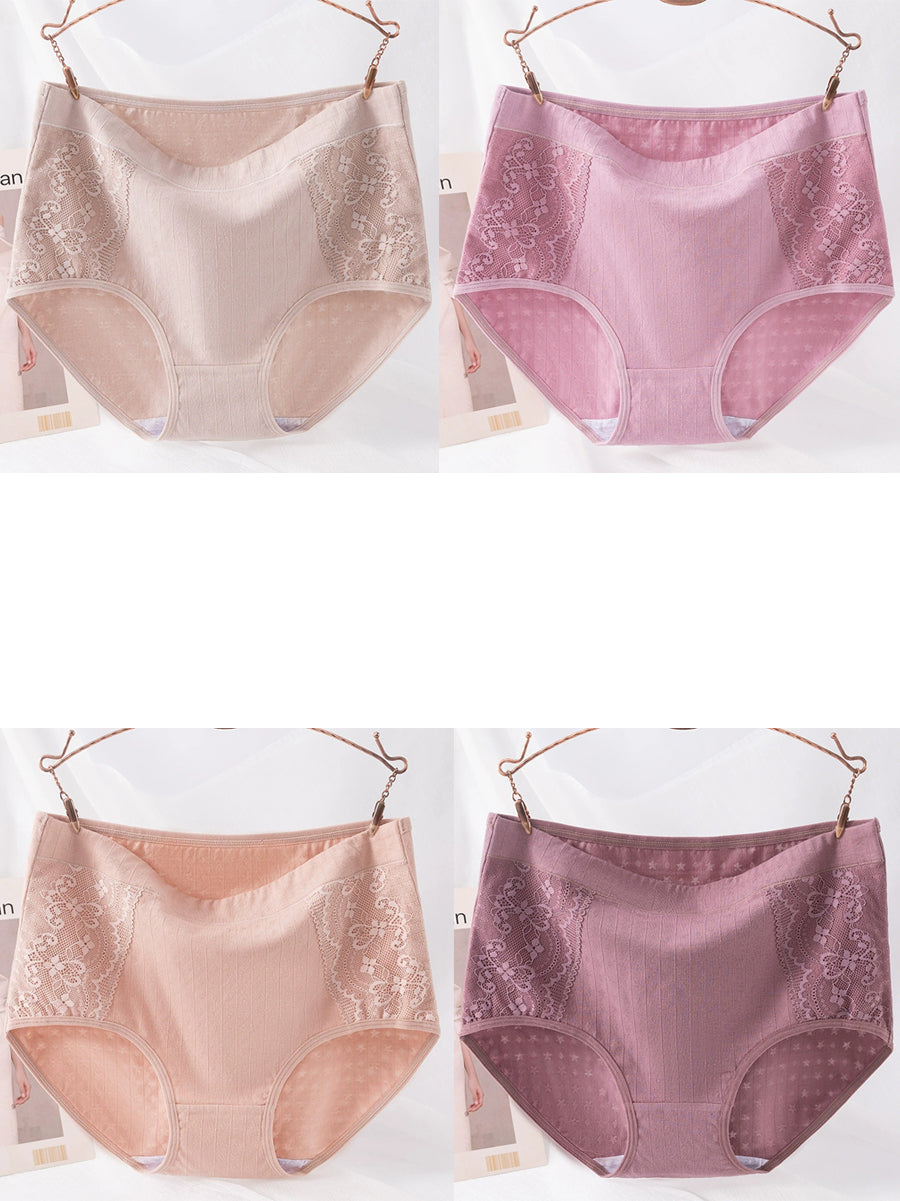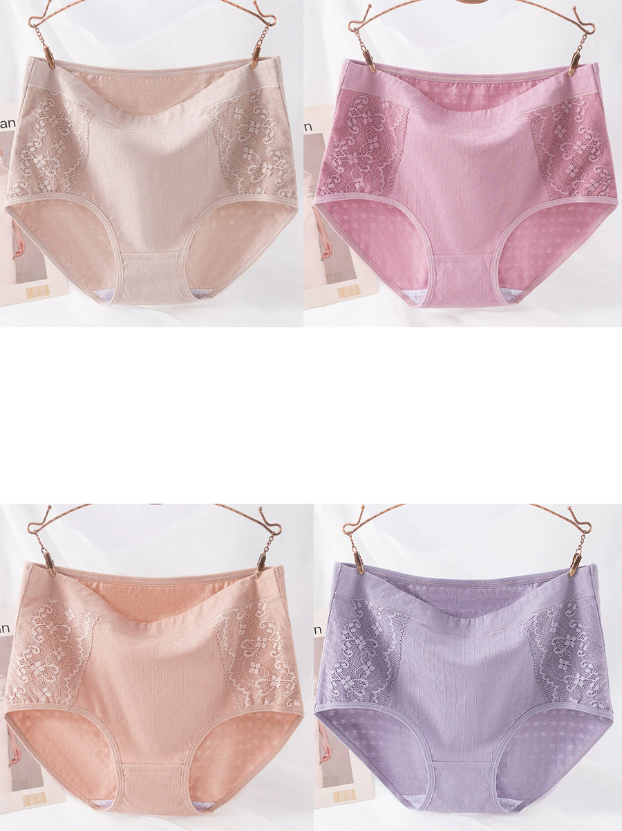 4 Pieces Women Artsy Lace Spliced High Waist Underwear
