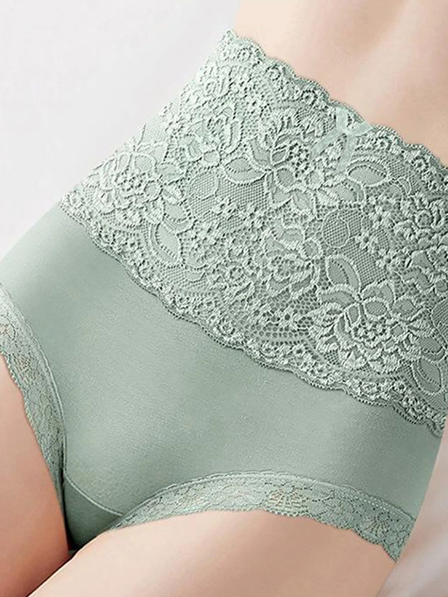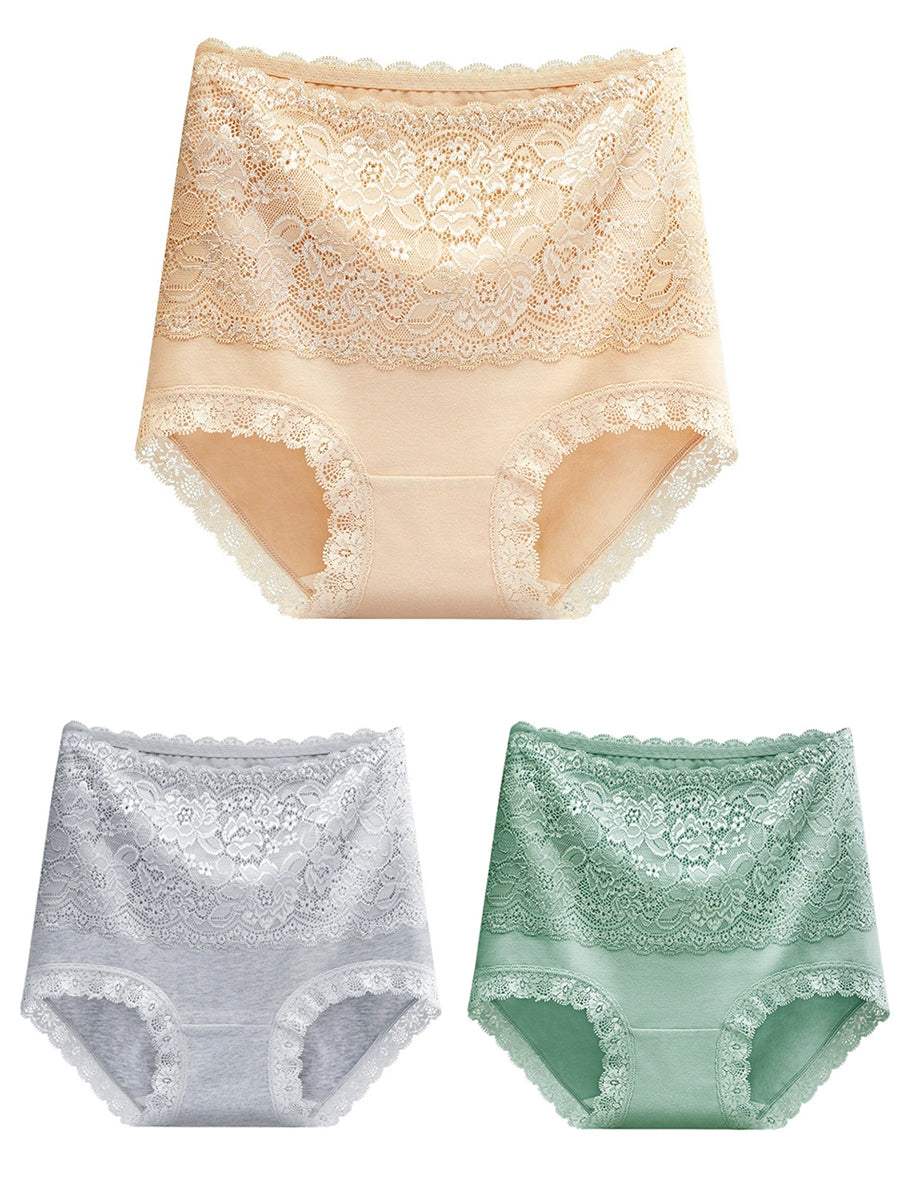 3 Pieces Women Artsy Floral Lace High Waist Underwear