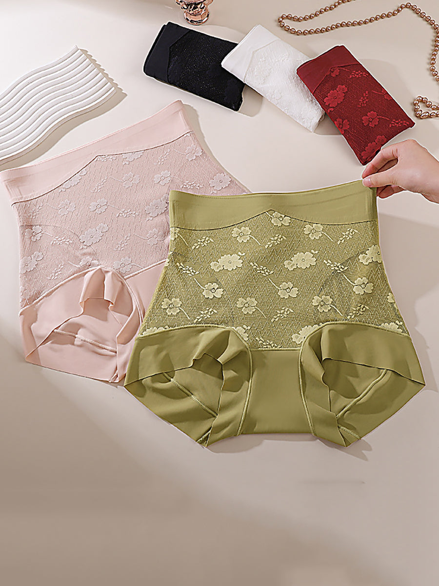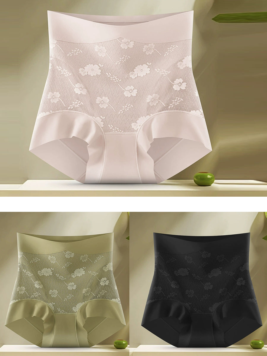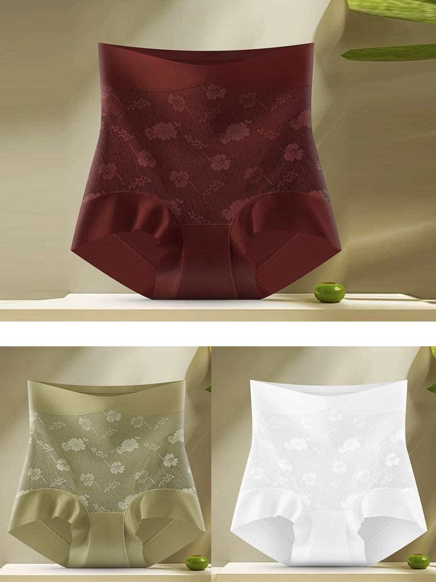 3 Pieces Women Artsy Flower Jacquard High Waist Underwear