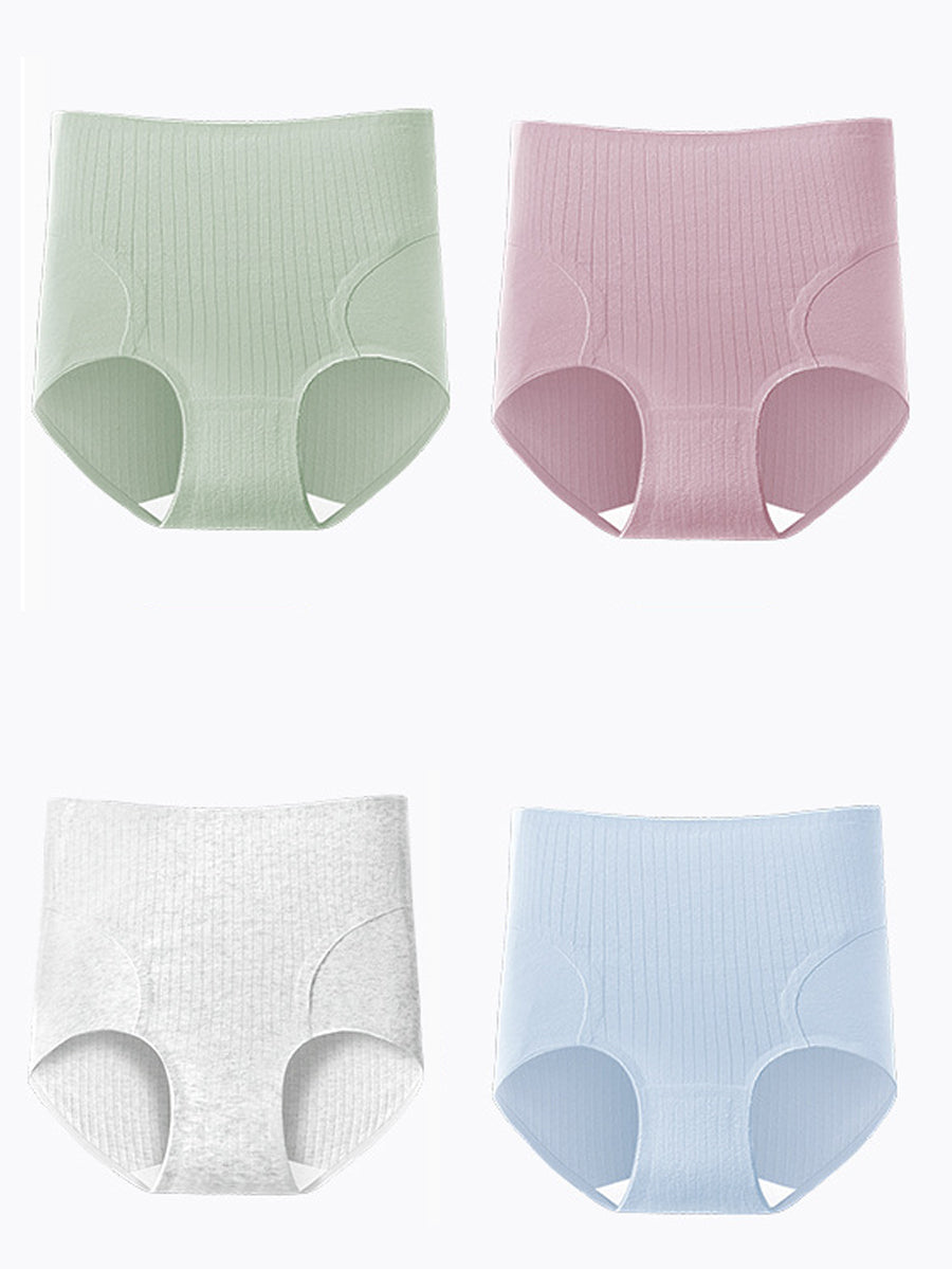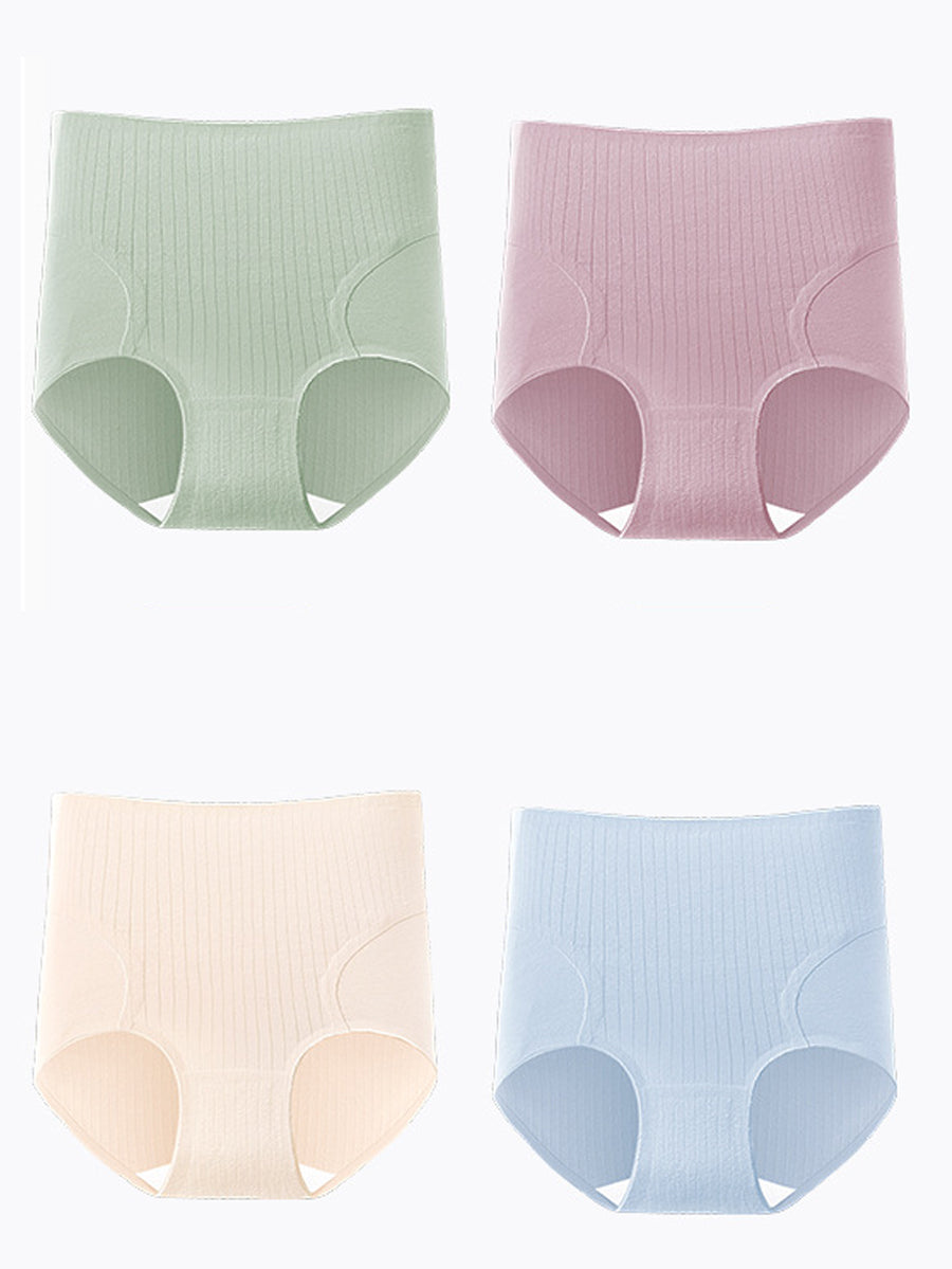 4 Pieces Women Artsy Pure Color High Waist Underwear