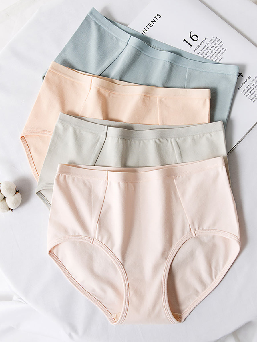 4 Pieces Women Casual Pure Color High Waist Underwear