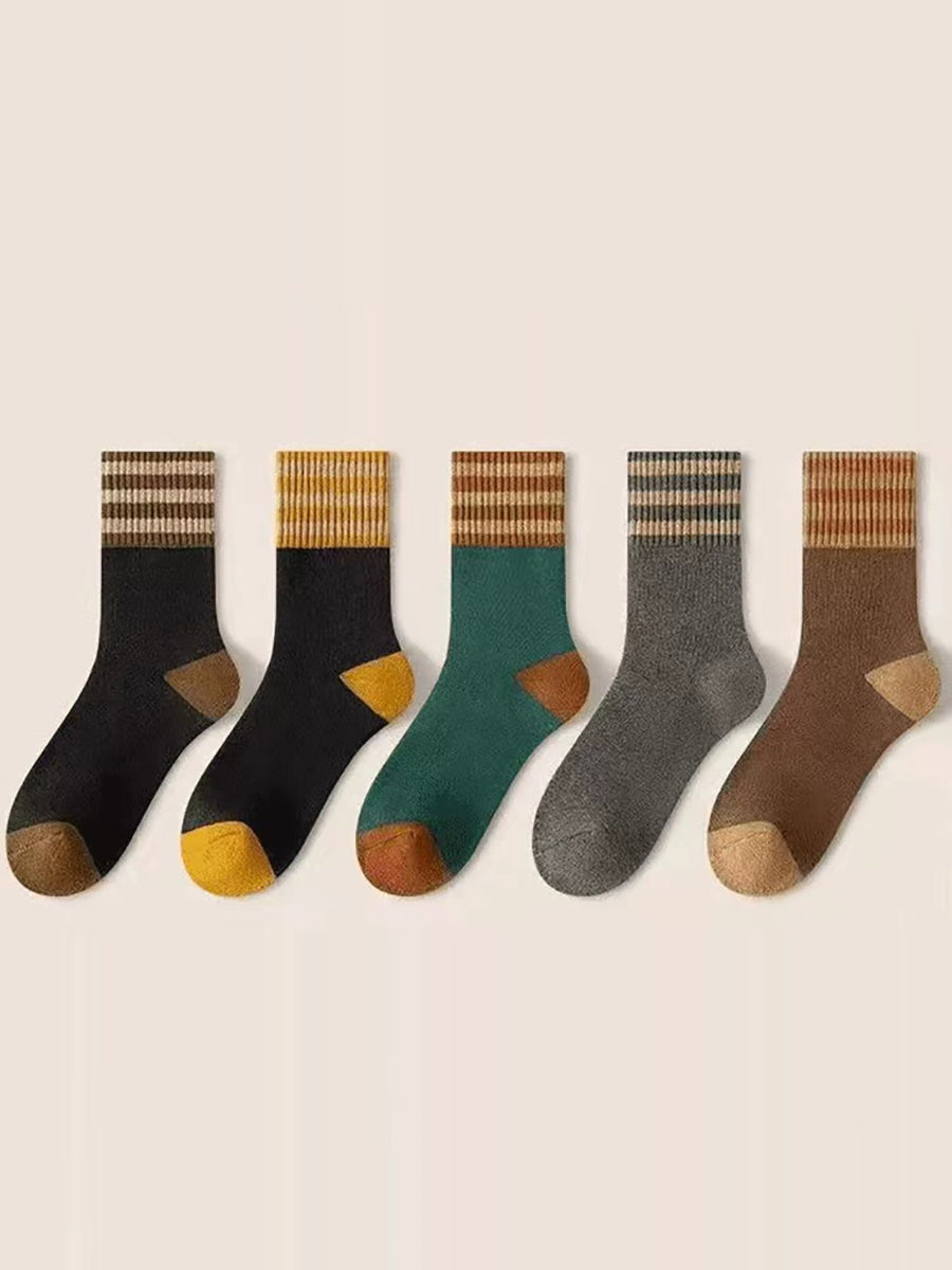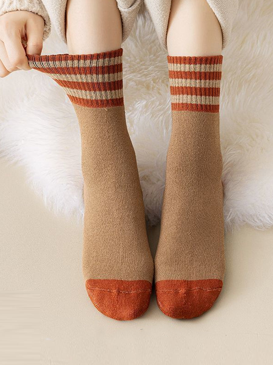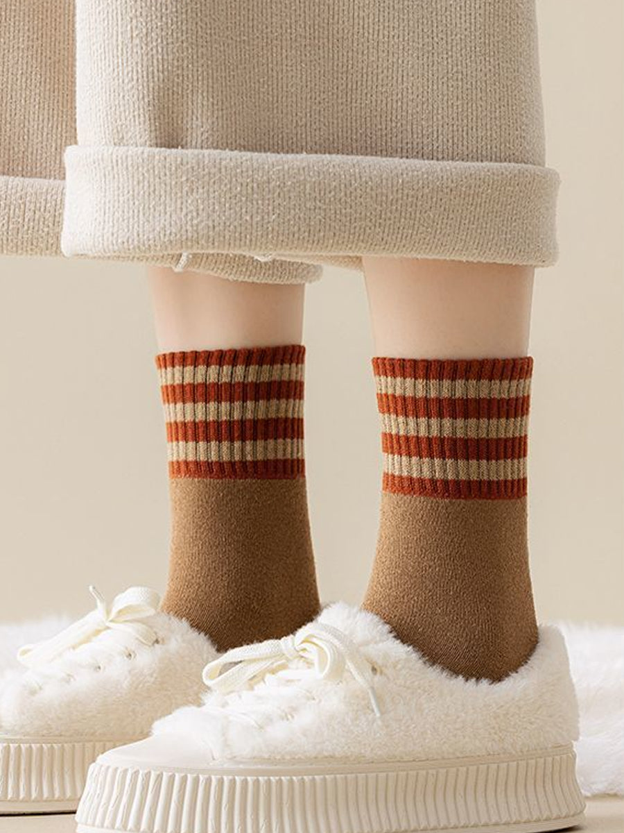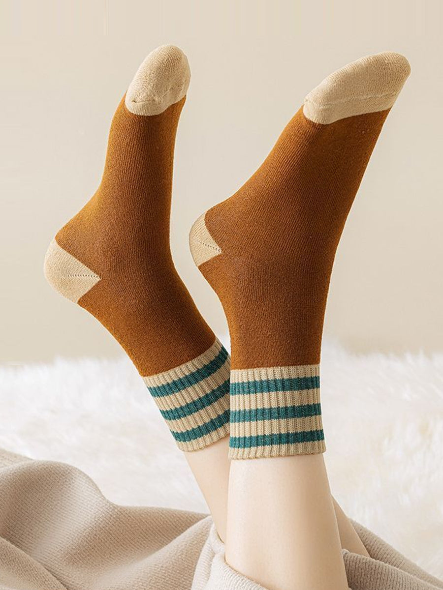 5 Pairs Women Winter Colorblock Stripe Socks