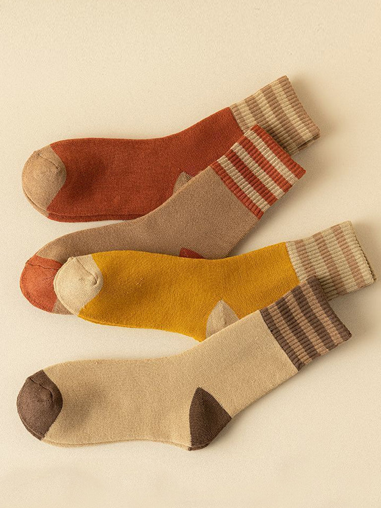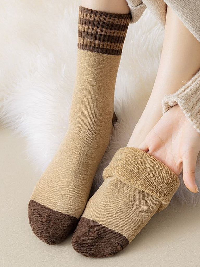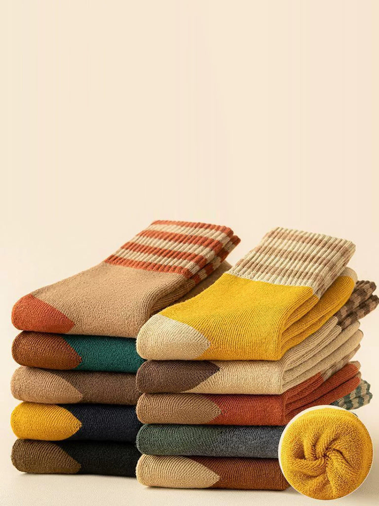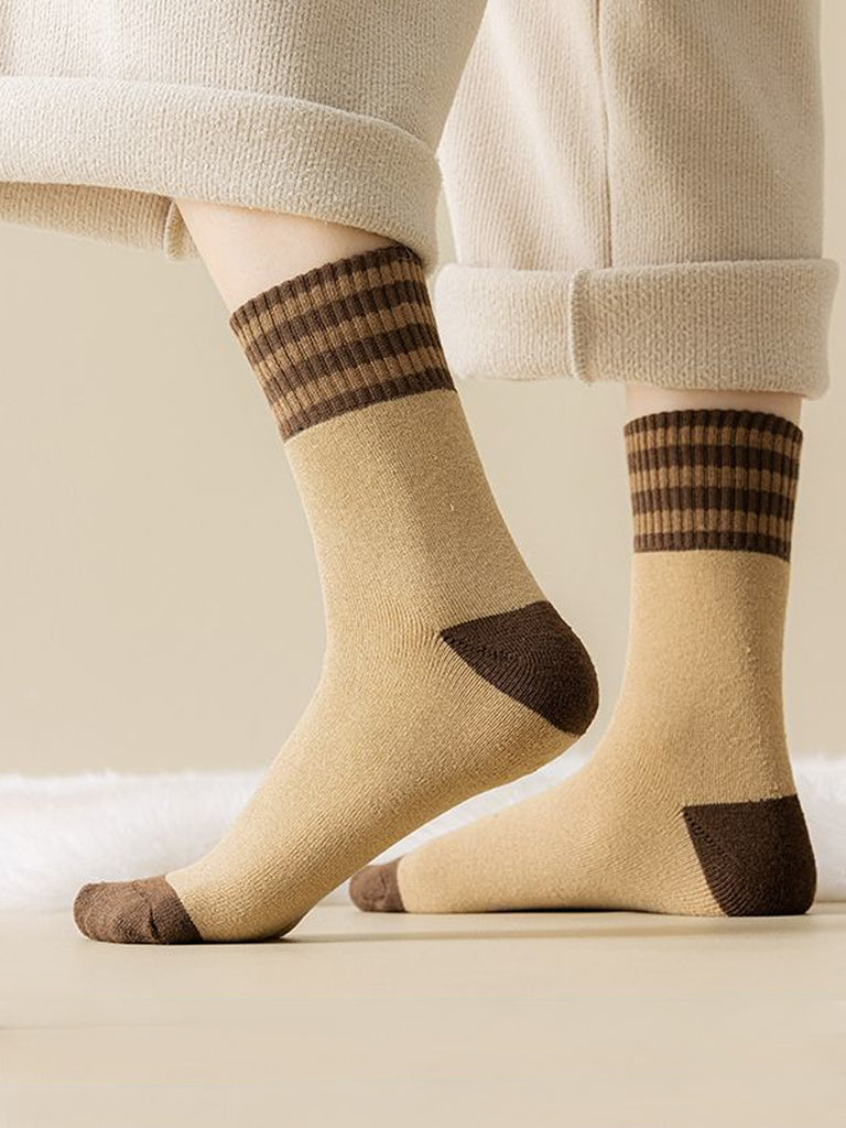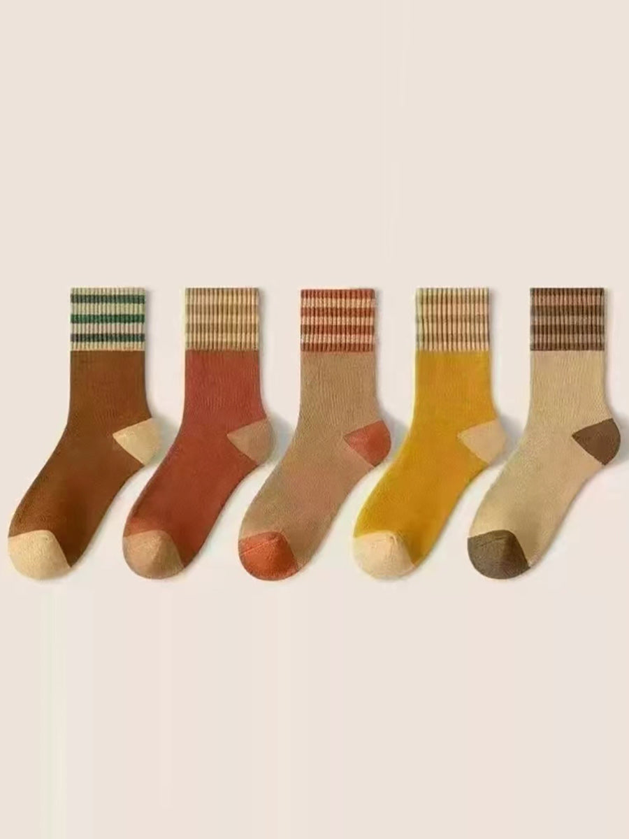 5 Pairs Women Winter Colorblock Stripe Socks