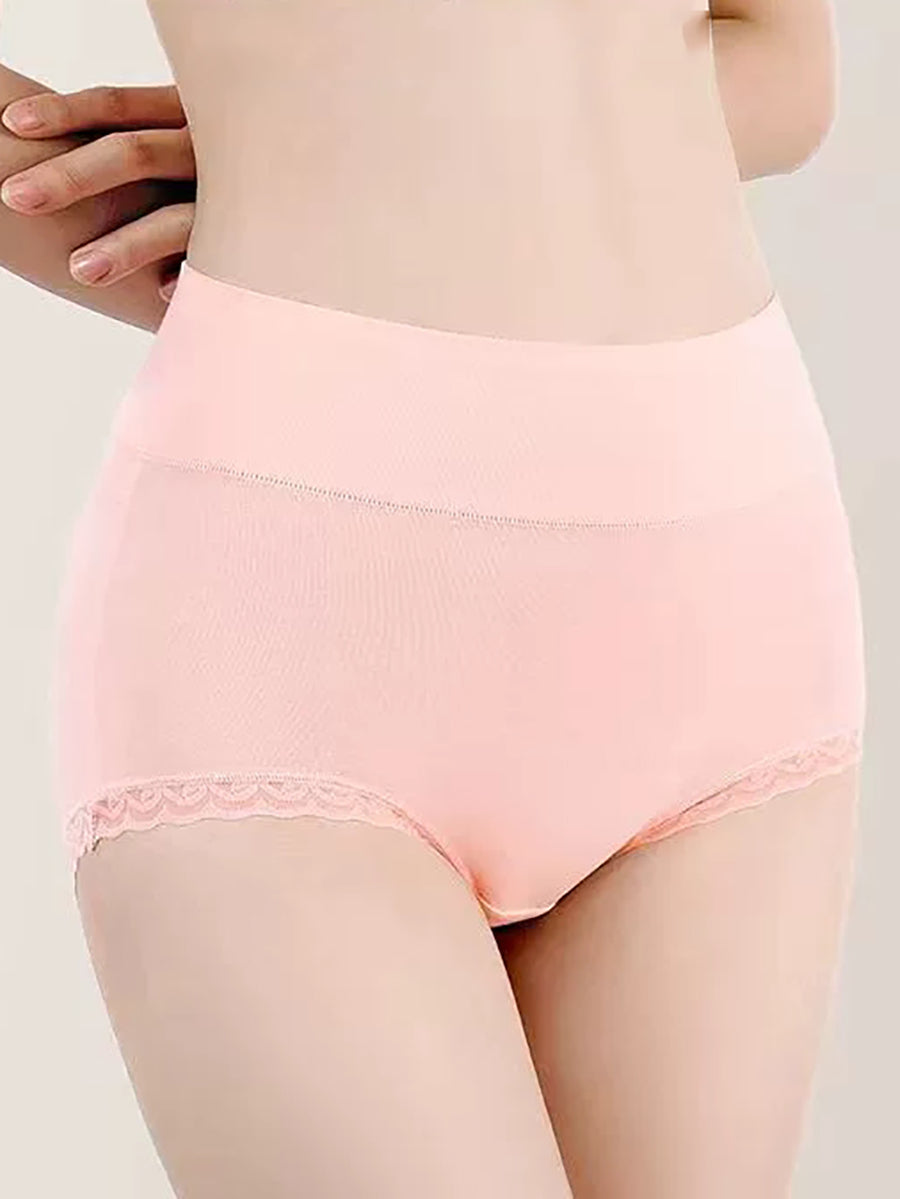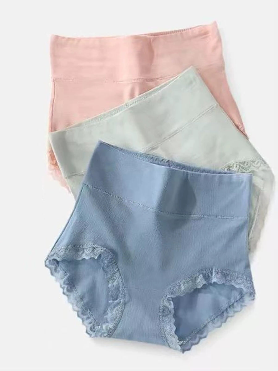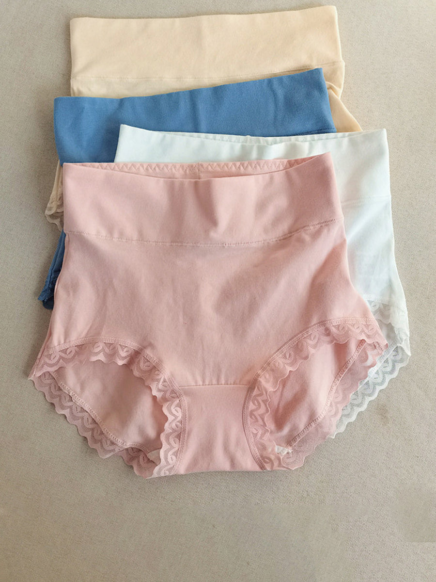 5 Pieces Women Casual Pure Color High Waist Lace Underwear