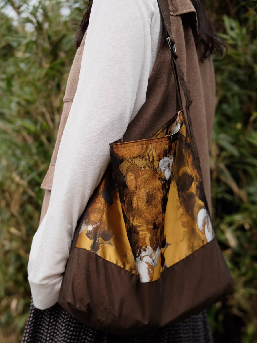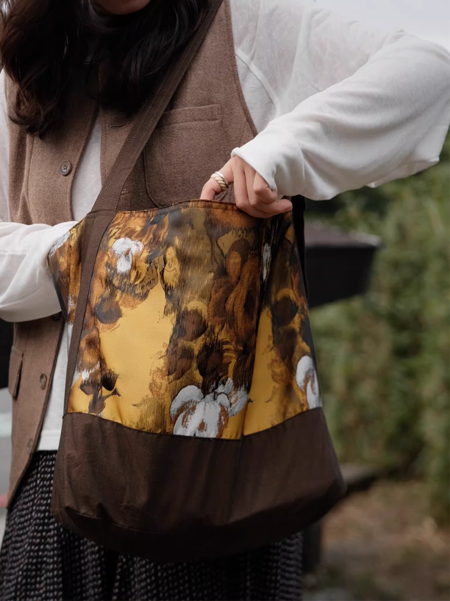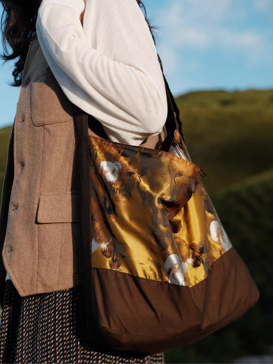 Brown Floral Painting Spliced Crossbody Bag