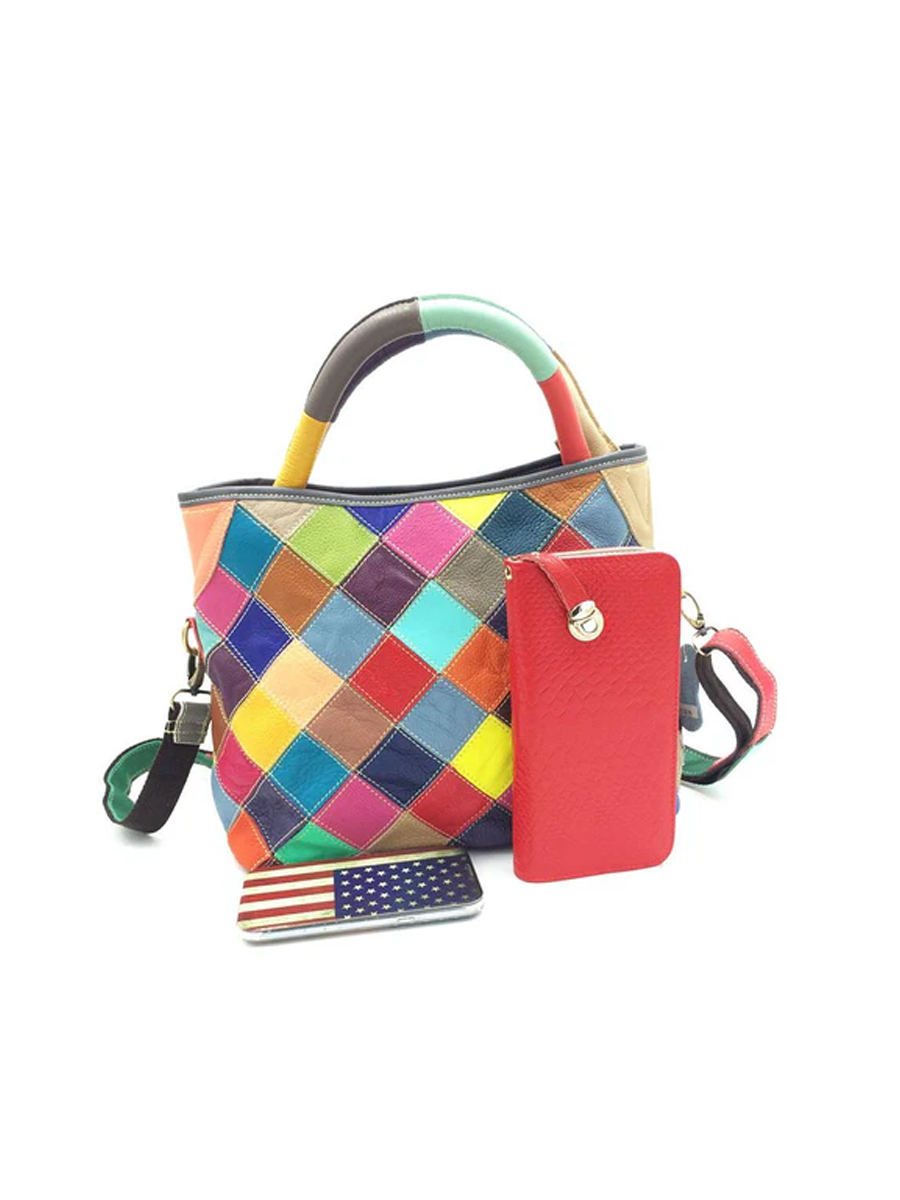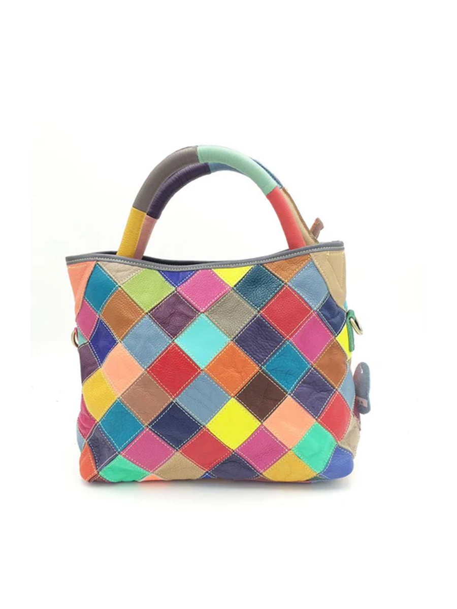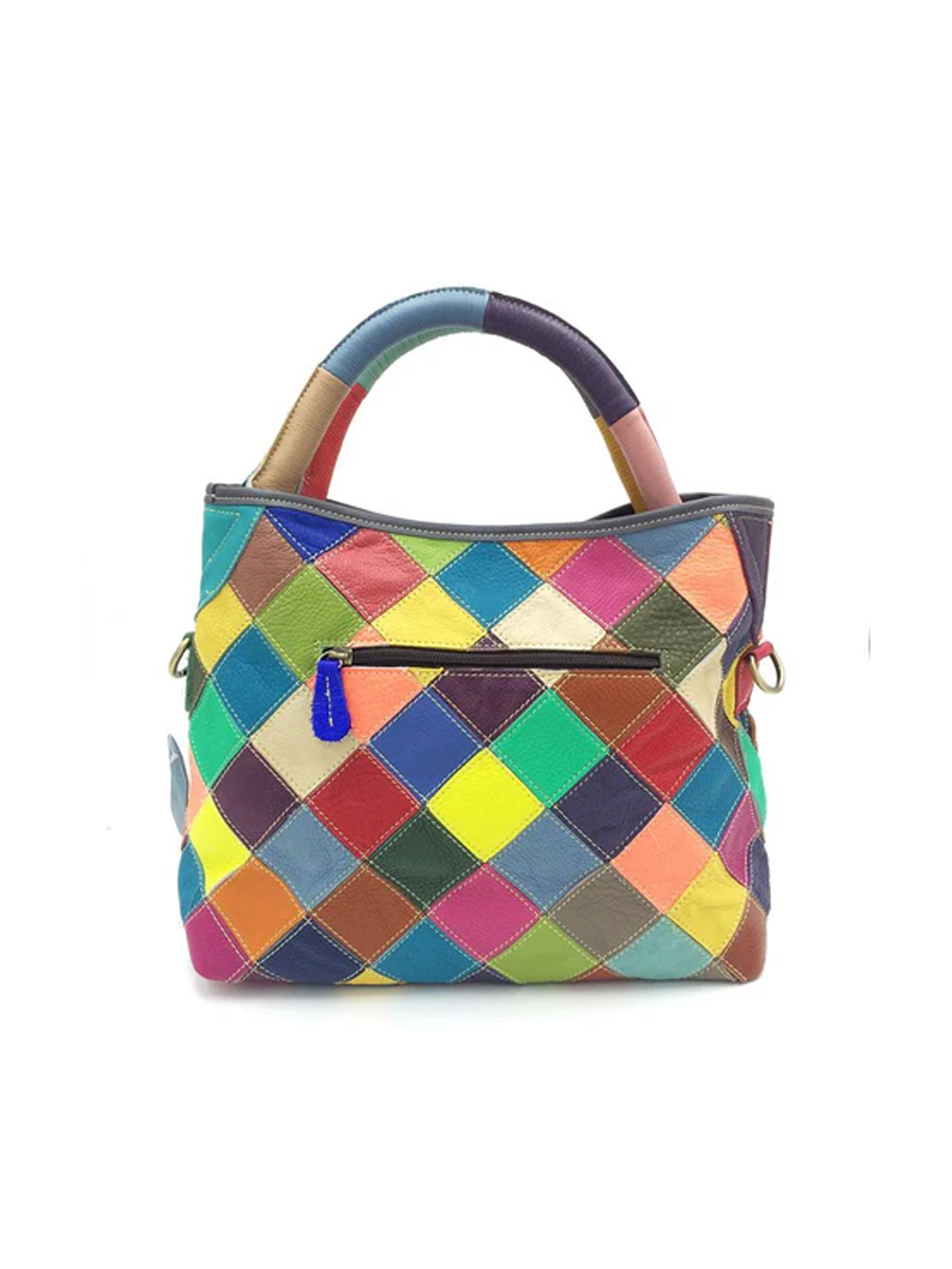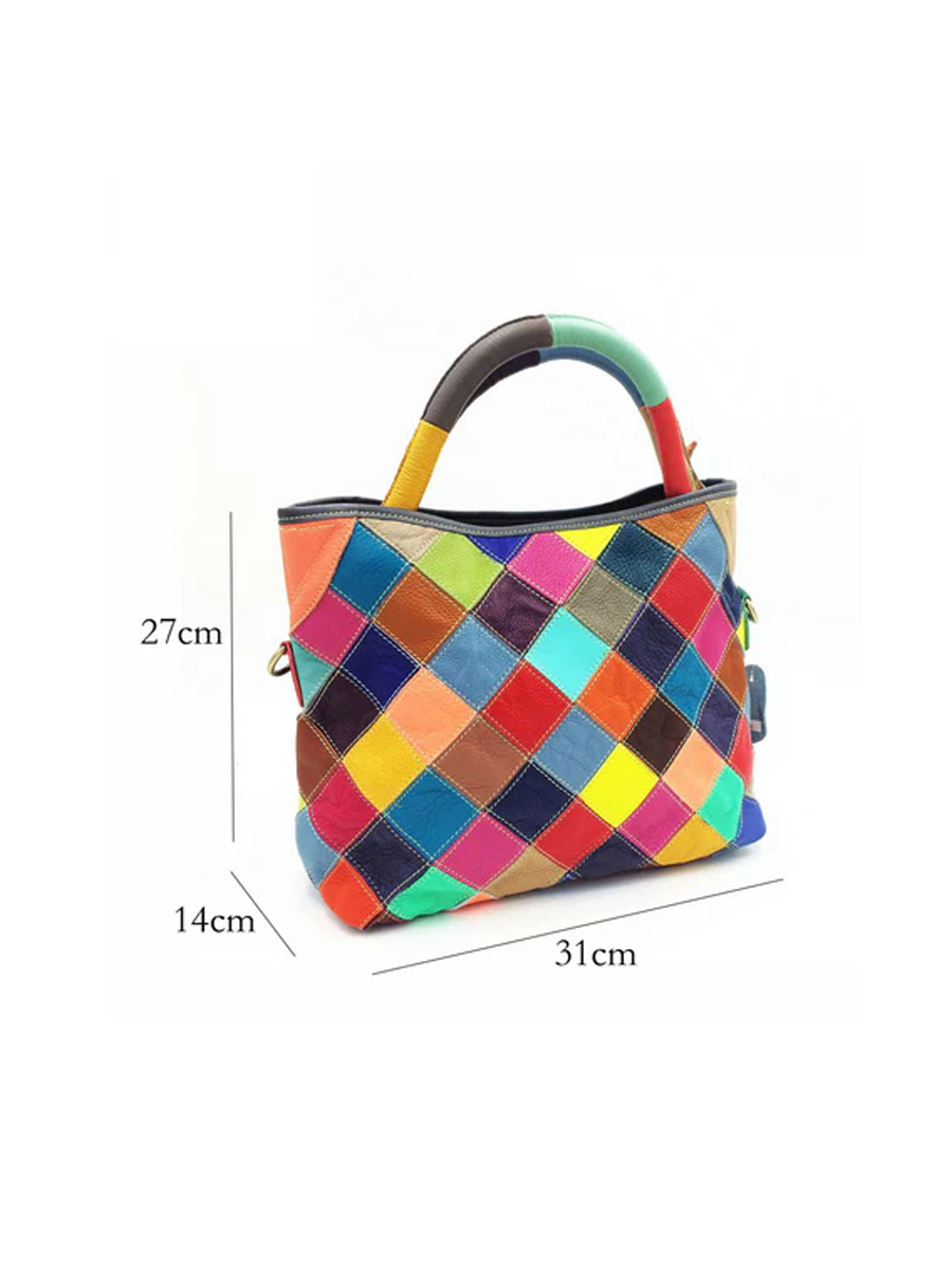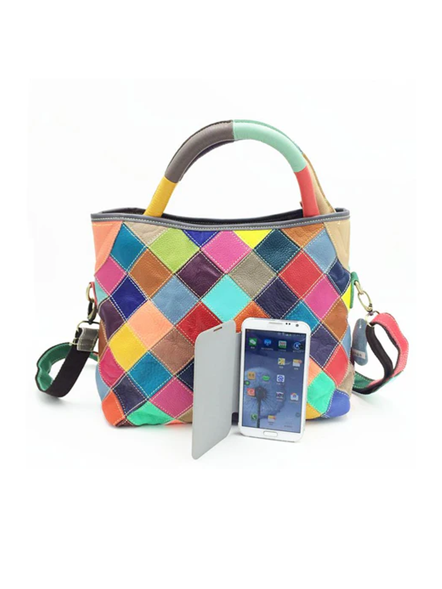 Casual Colored Grid Leather Handbag Crossbody Bag