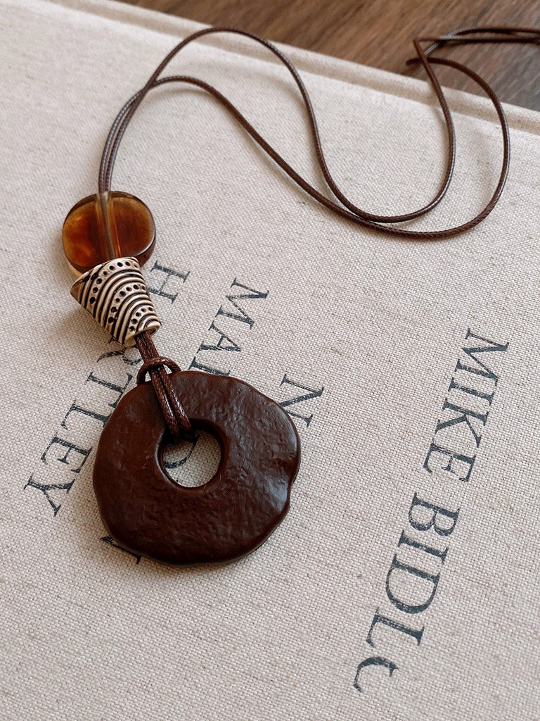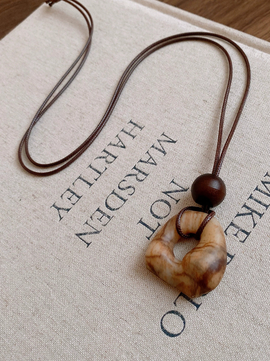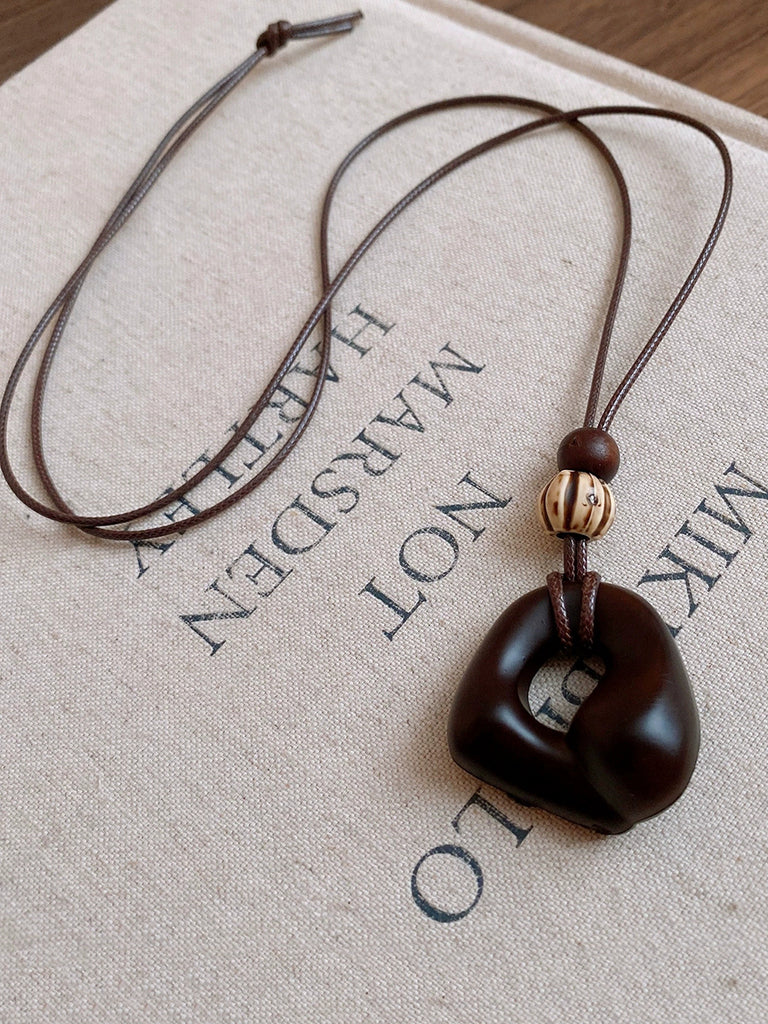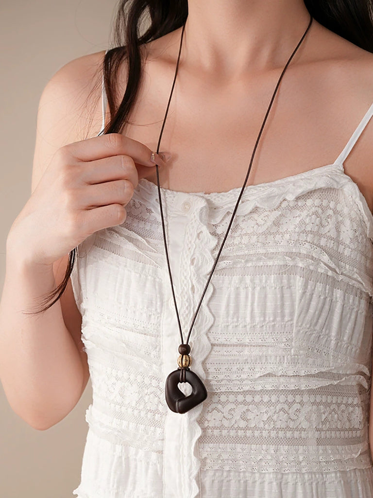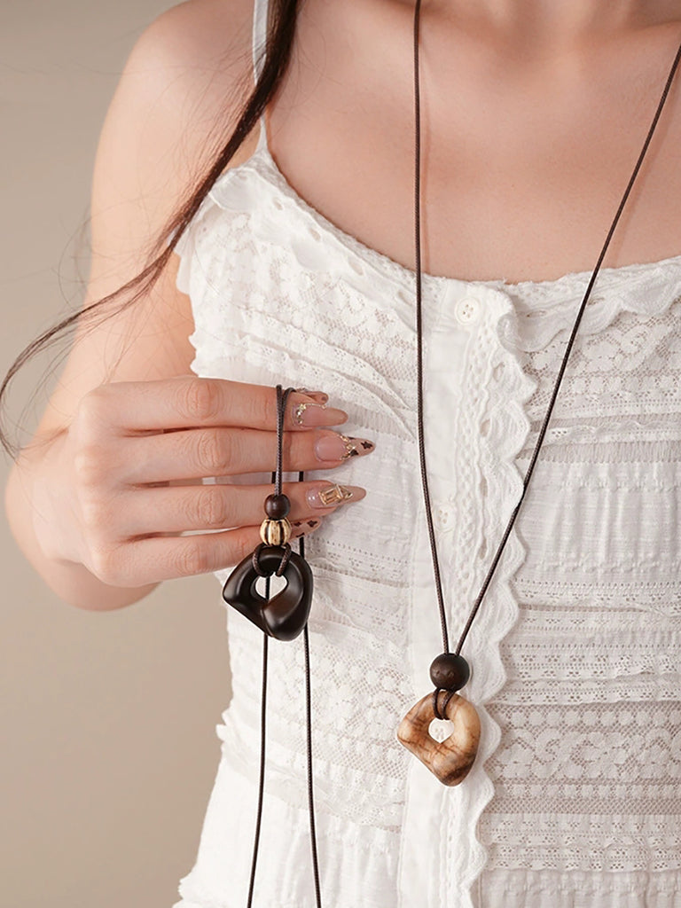 Irregular Geometric Wood Bead Resin Pendant Necklace