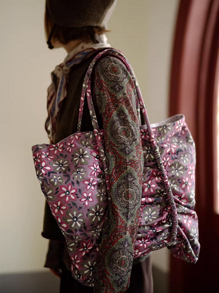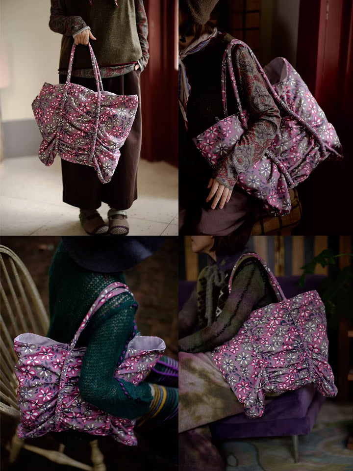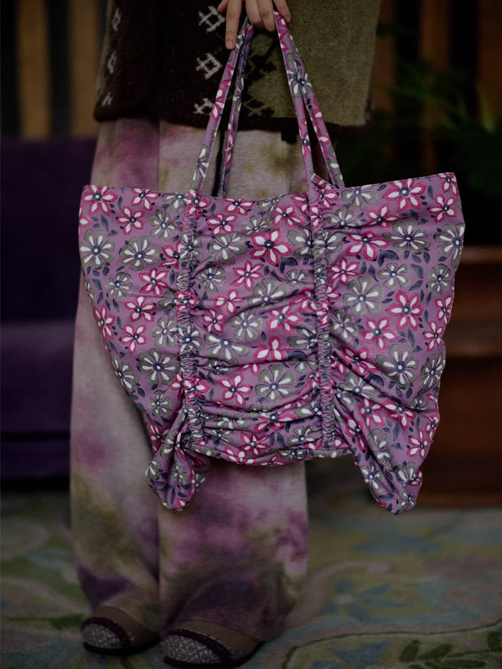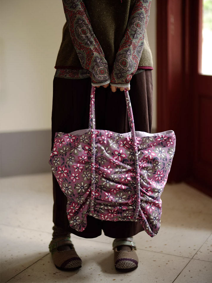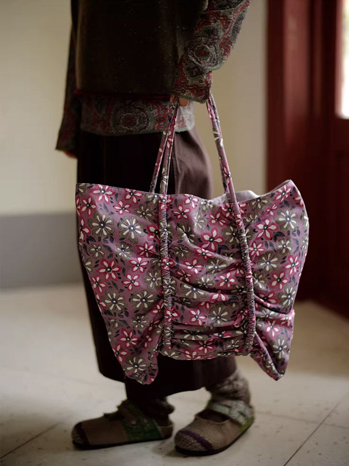 Pink Flower Print Buttefly Shape Tote Bag
