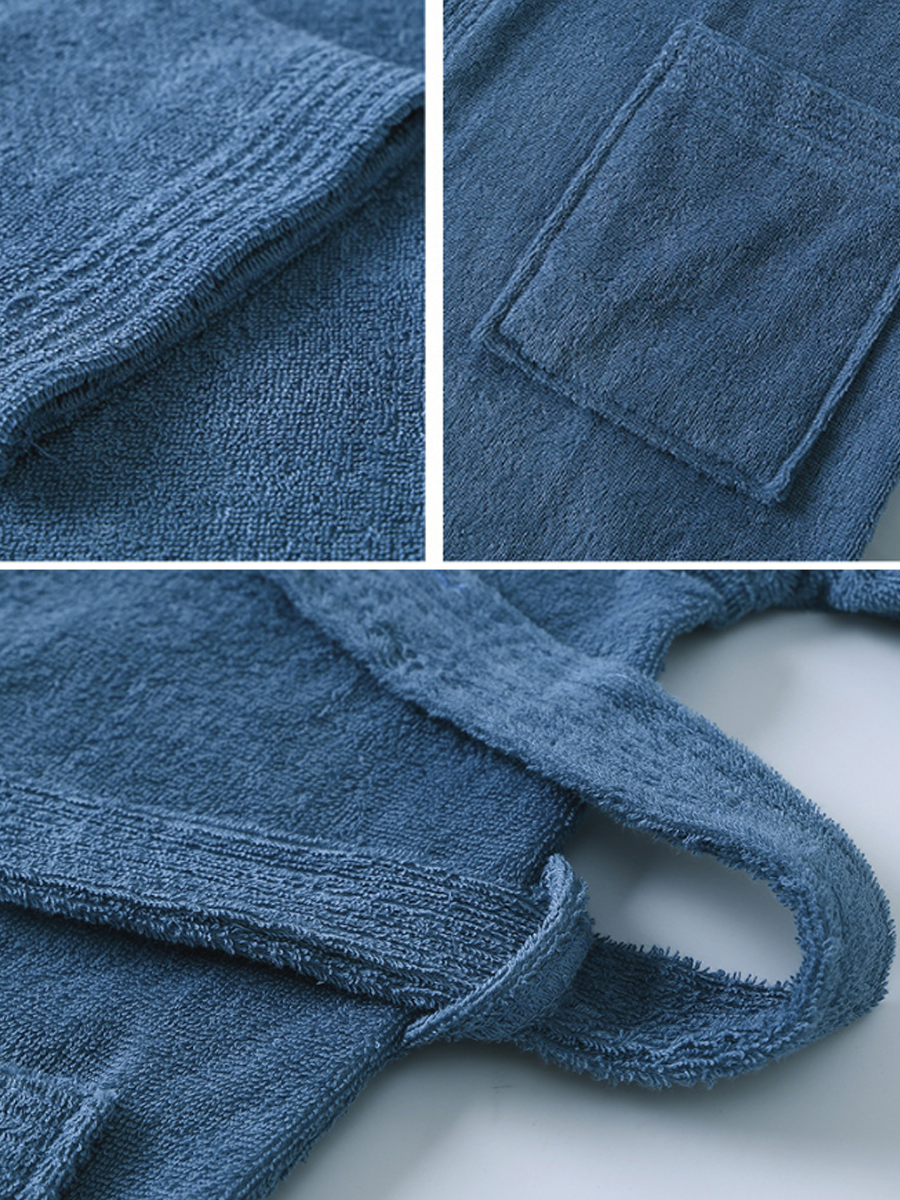 This pure cotton terry bathrobe offers the perfect balance between plush absorbency and lightweight wearability. Unlike heavy spa robes, our thin-cut terry fabric is airy, soft, and ideal for spring, summer, or year-round use in warmer climates.