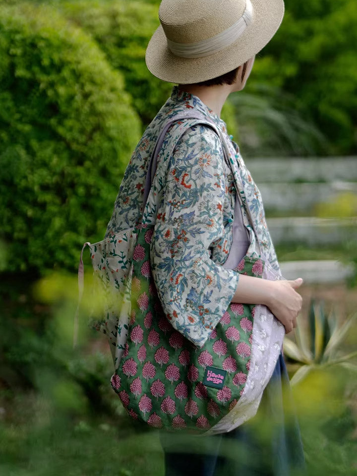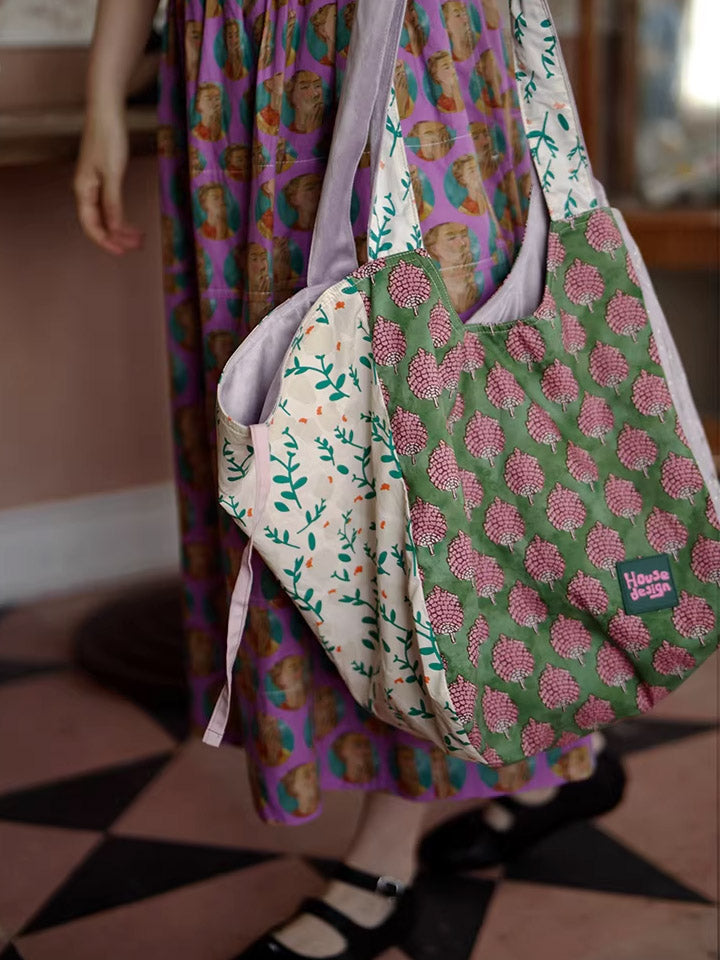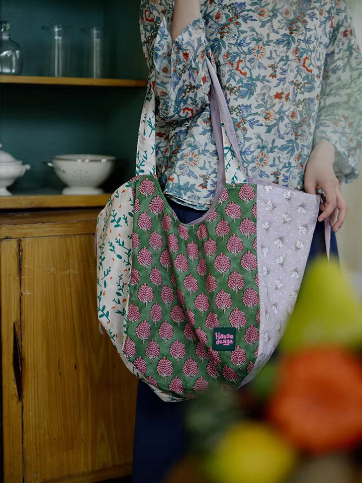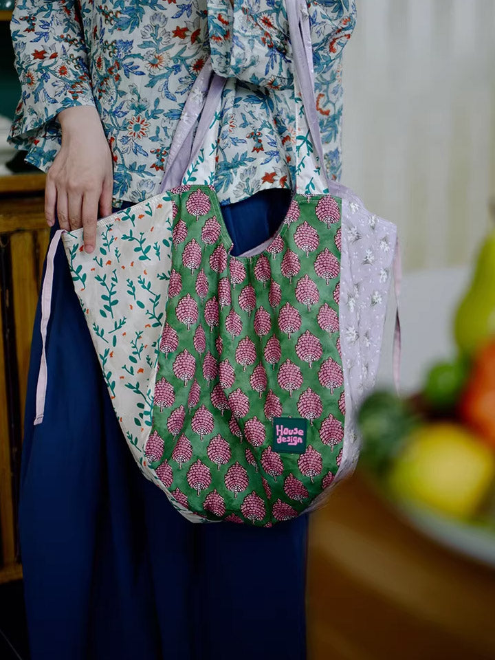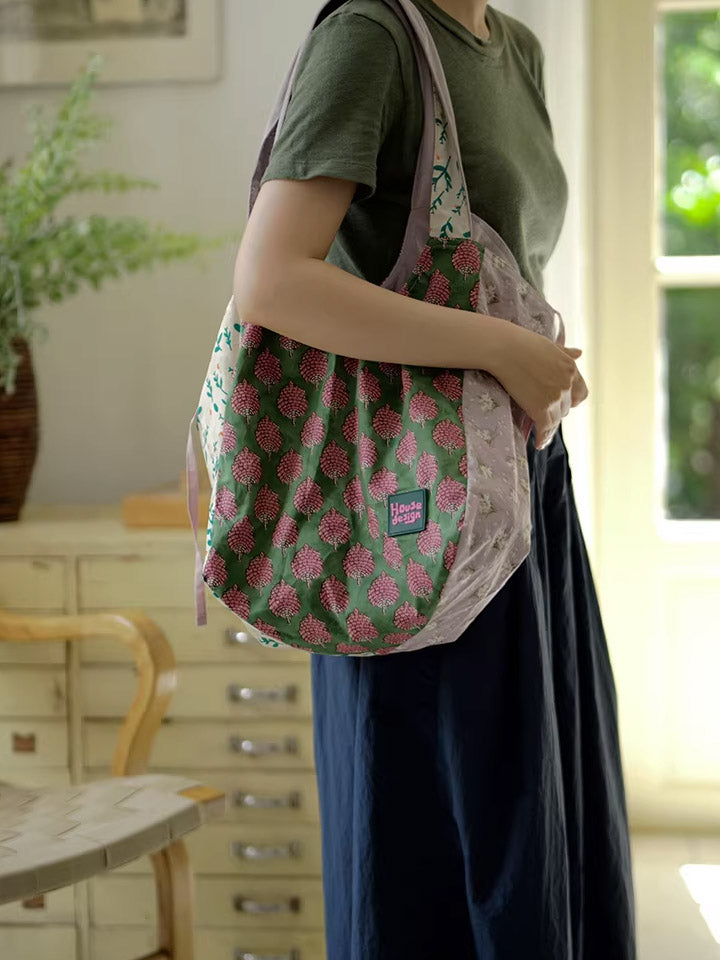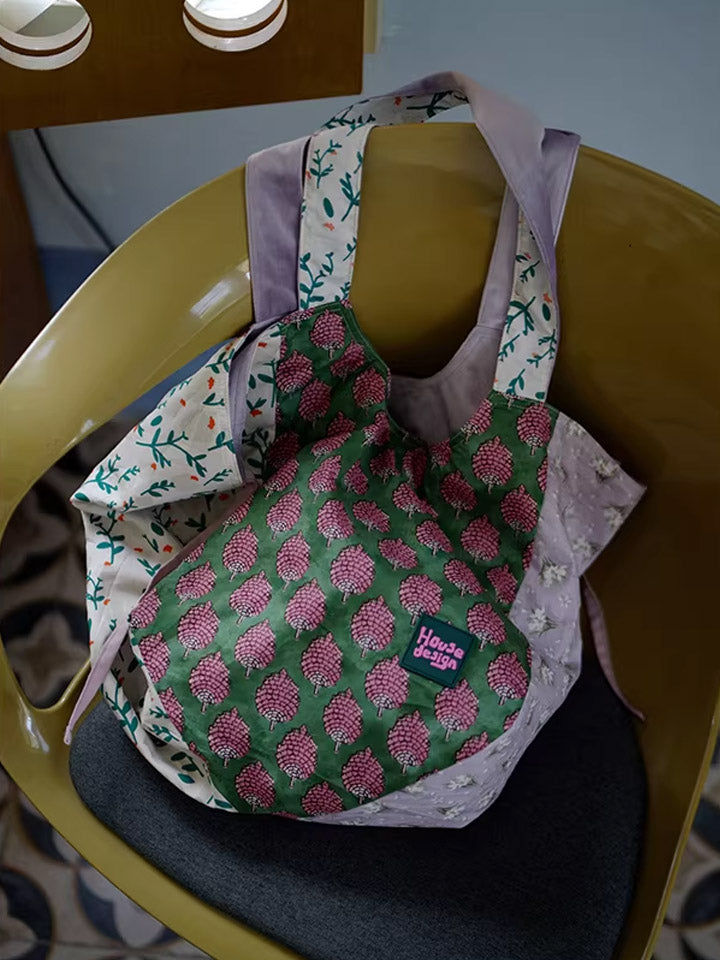 Retro Berry Block Printing Spliced Shoulder Bag