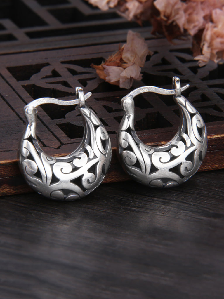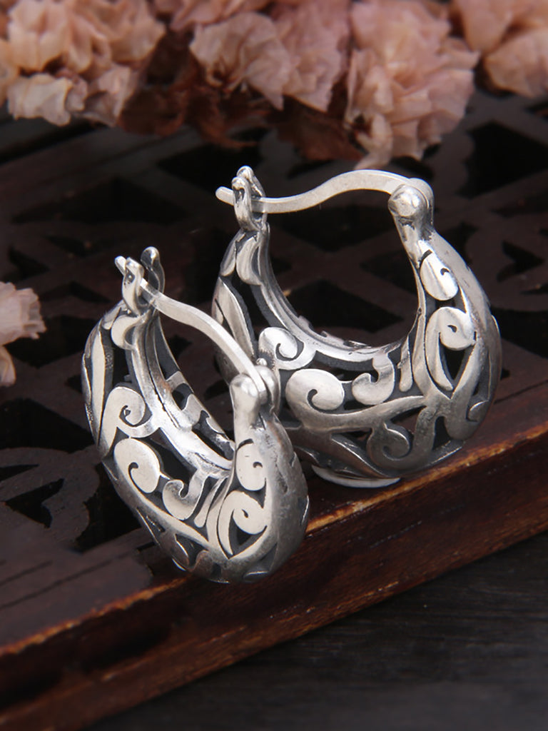 Sliver Hollow Flower Artsy Earrings