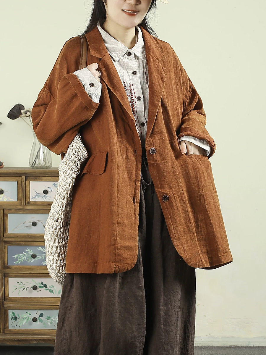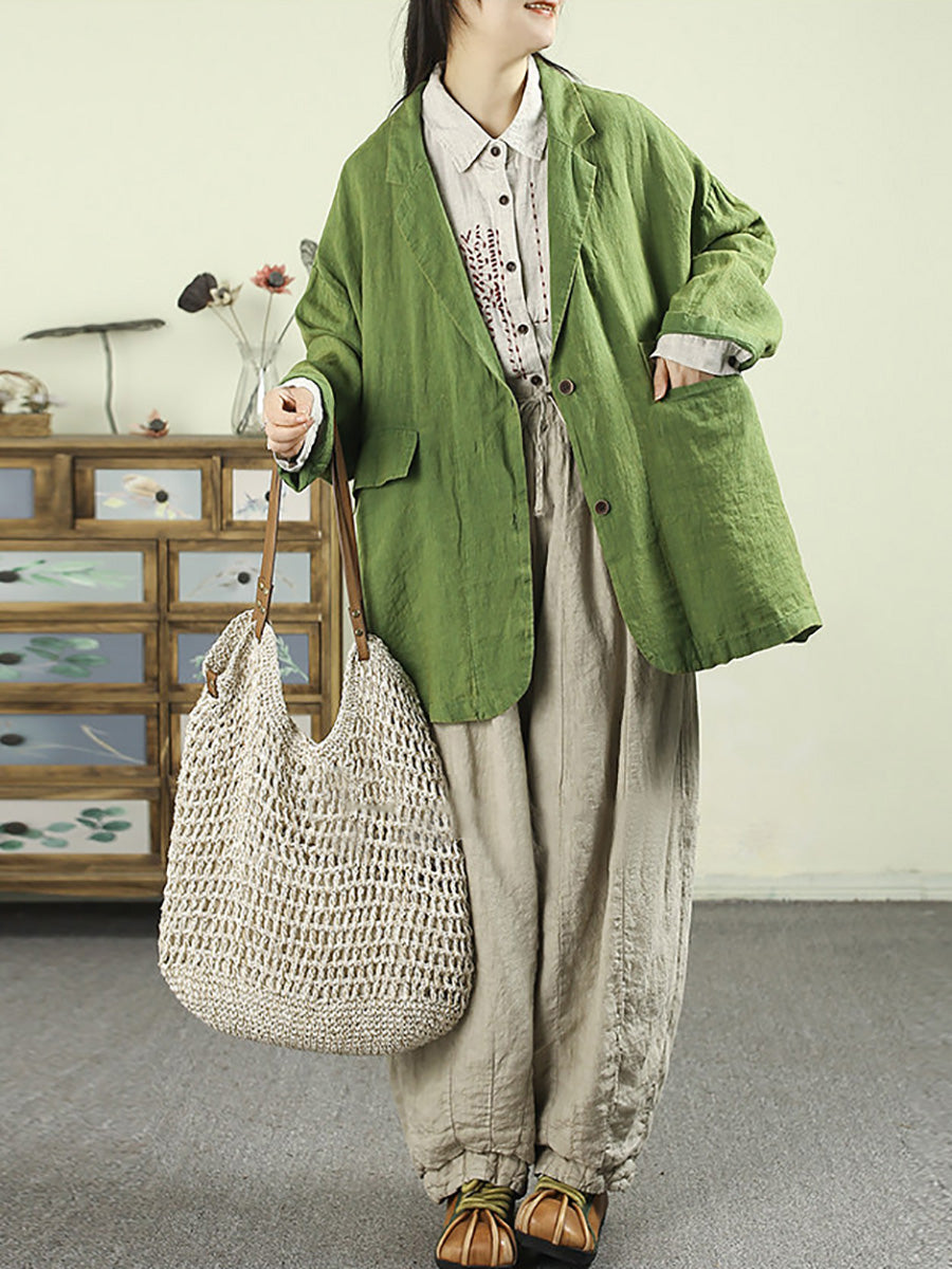 Women Artsy Spring Pure Color 100%Linen Coat