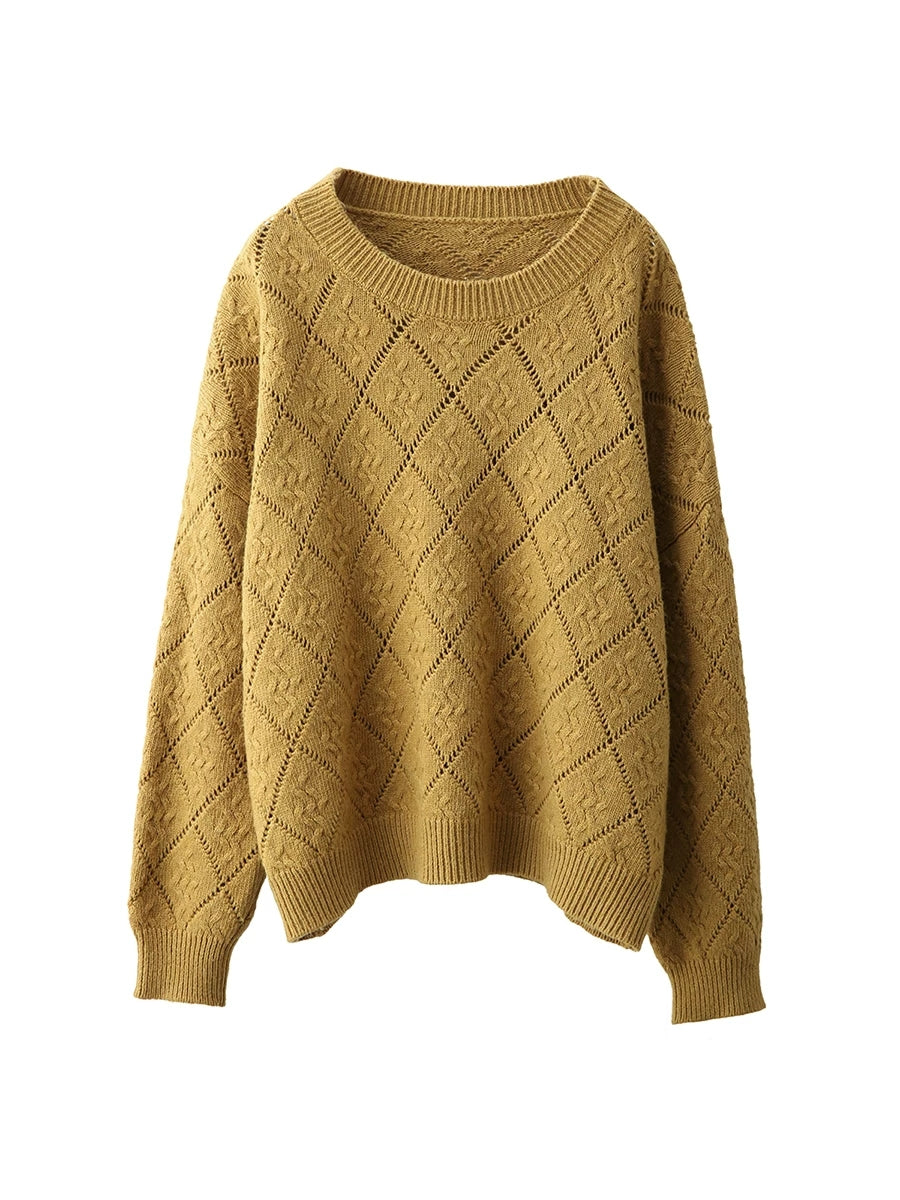 Women Artsy Spring Rhomboids O-Neck Sweater