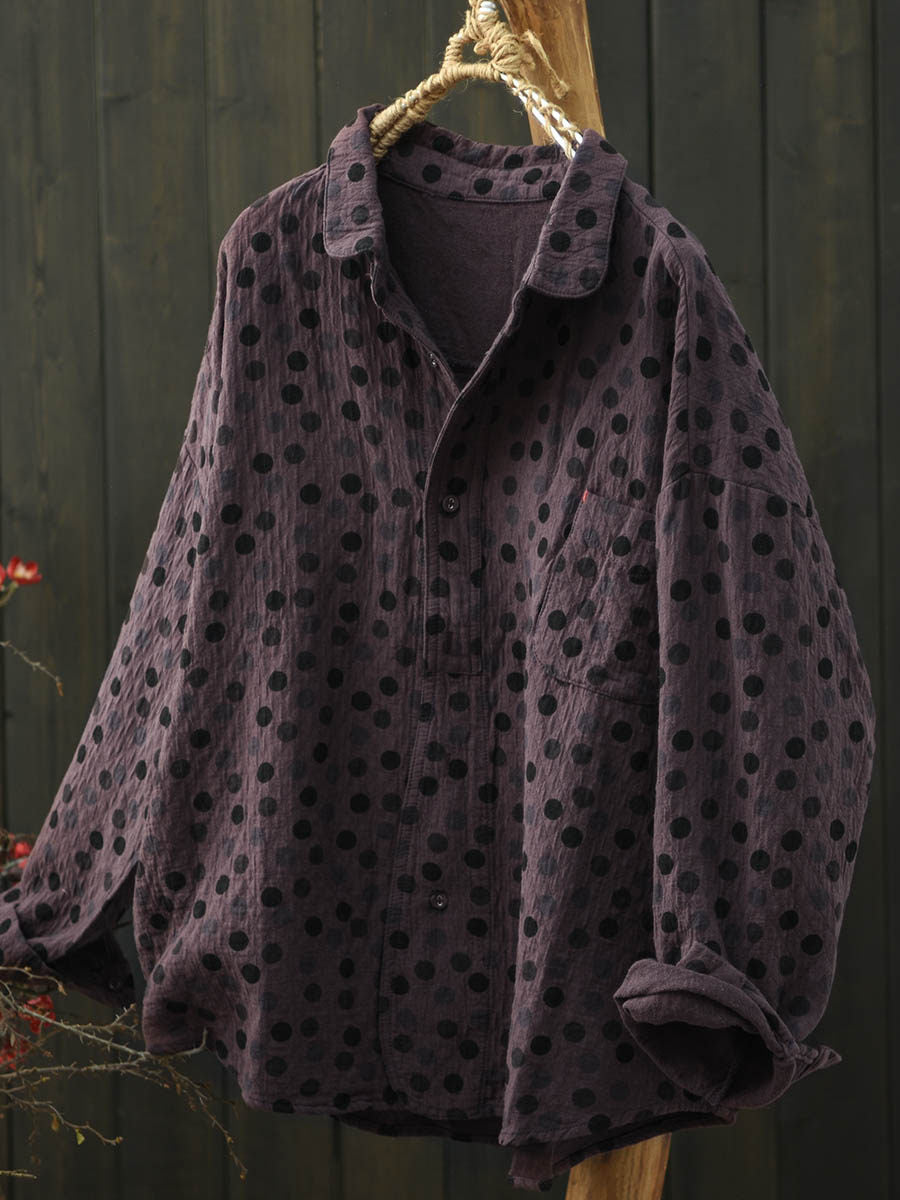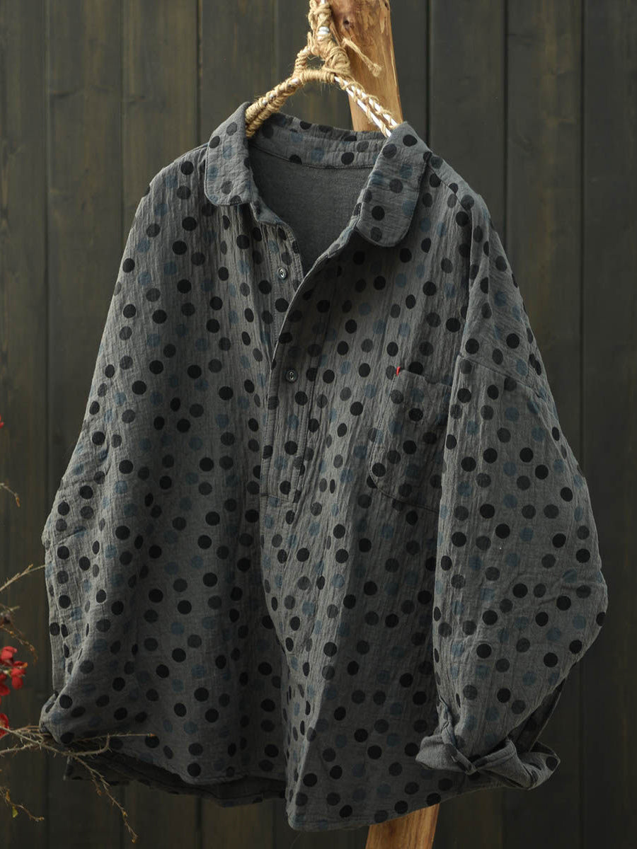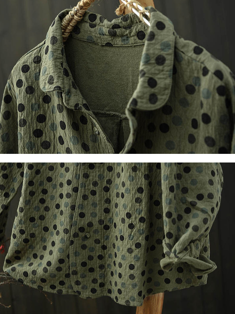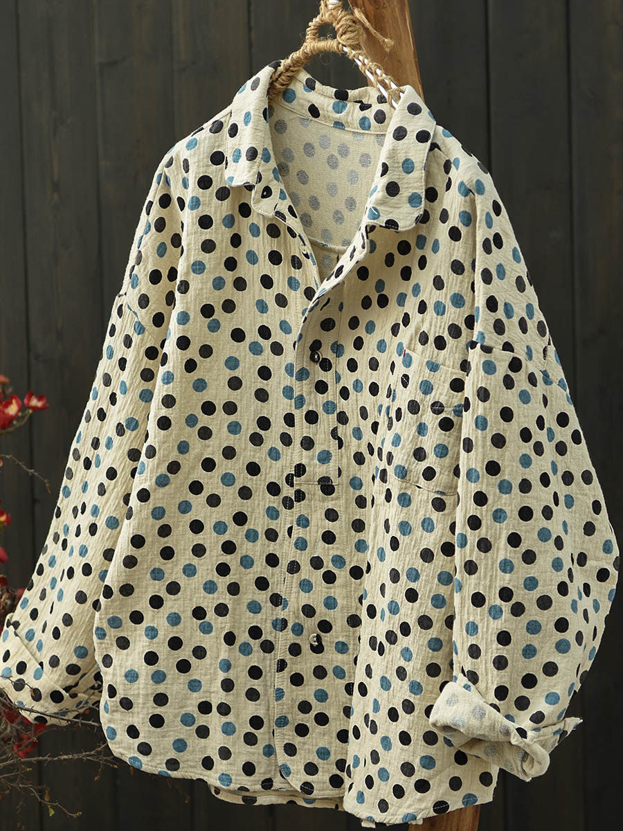 Women Autumn Artsy Dot Turn-down Collar Cotton Shirt