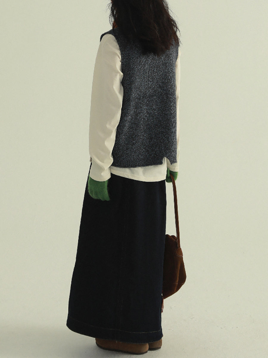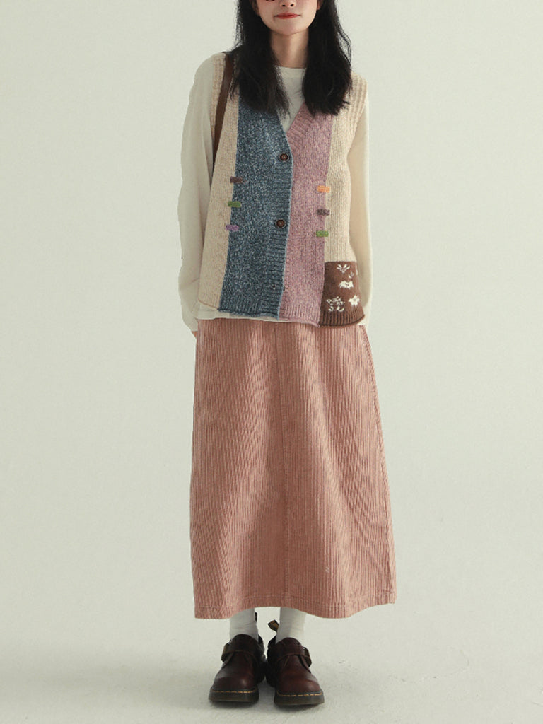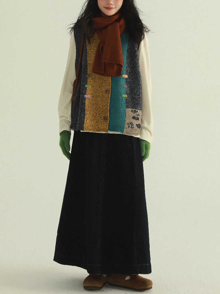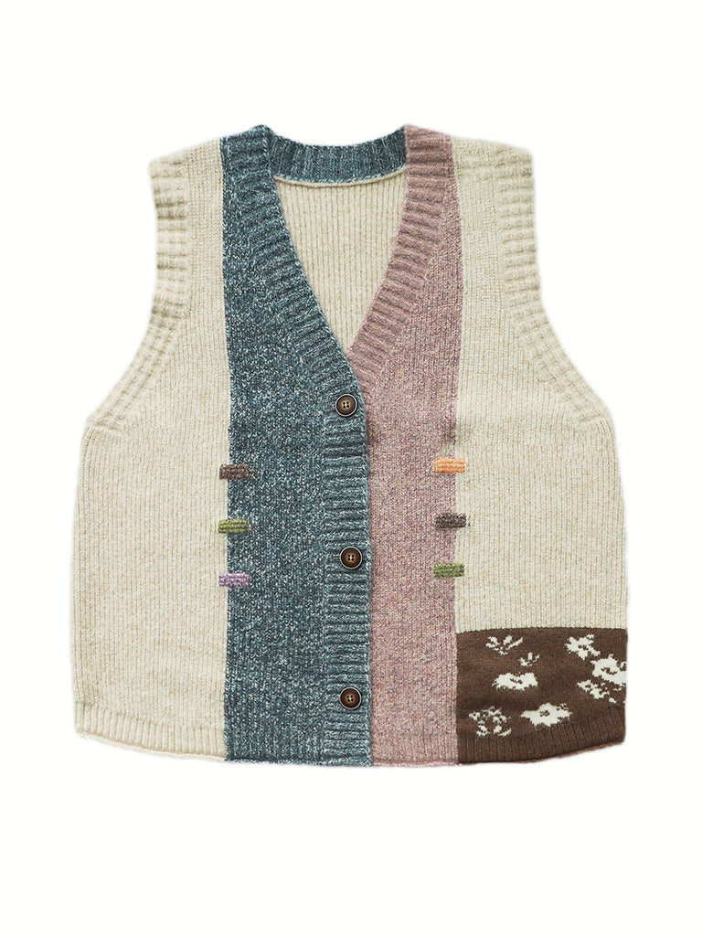 Women Autumn Artsy Patchwork V-Neck Knitted Vest