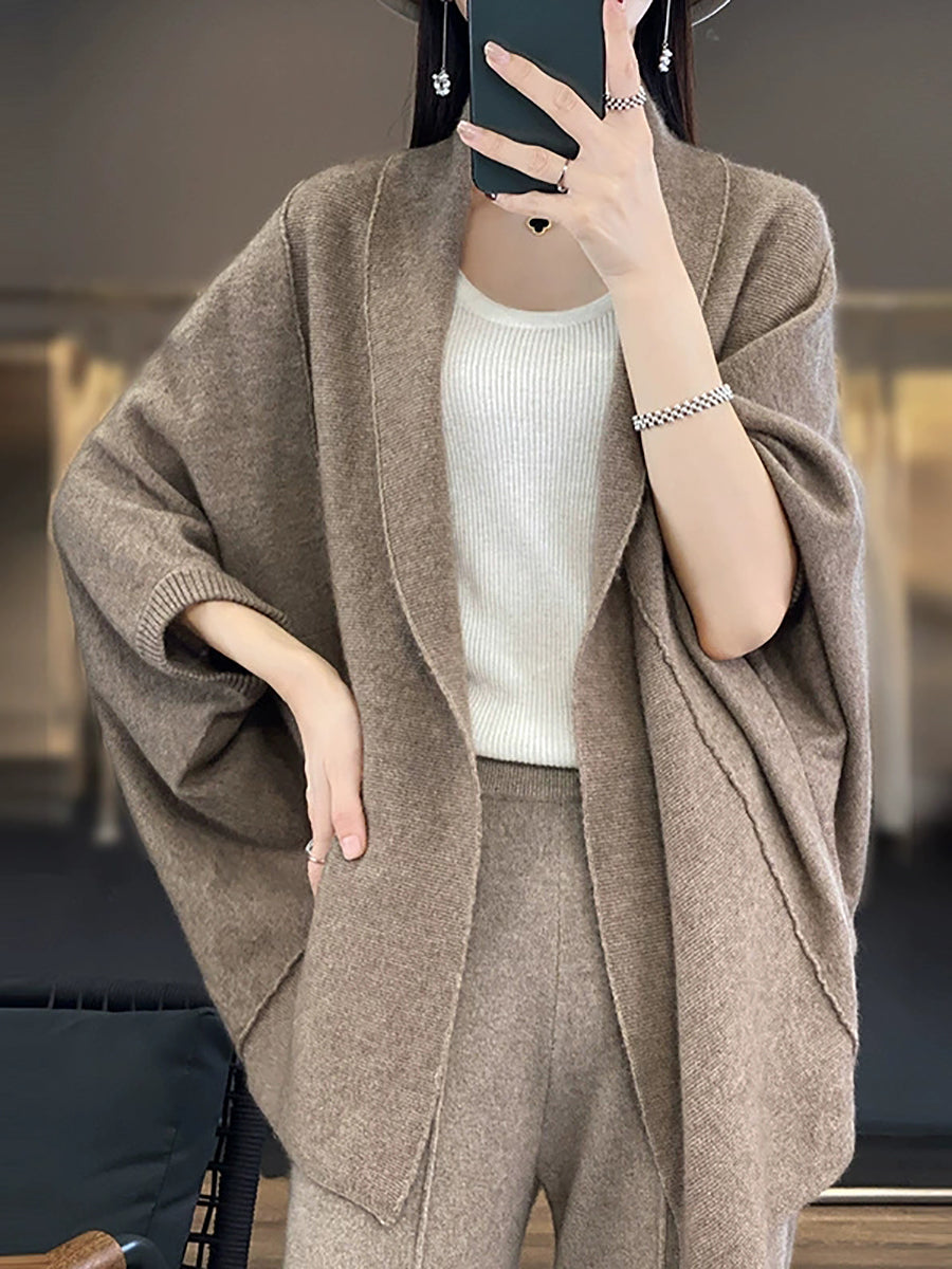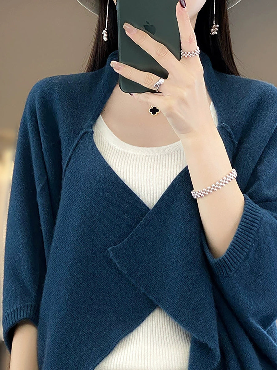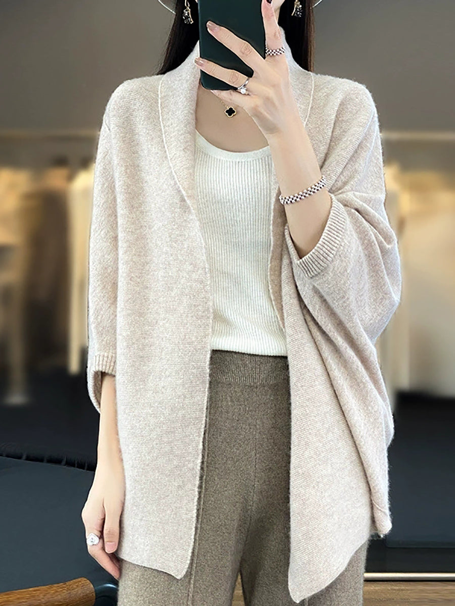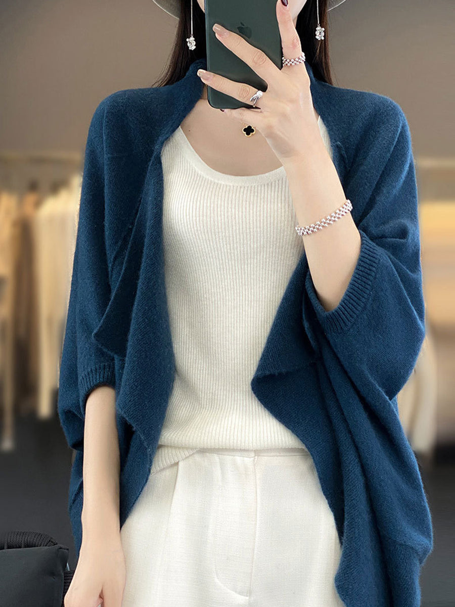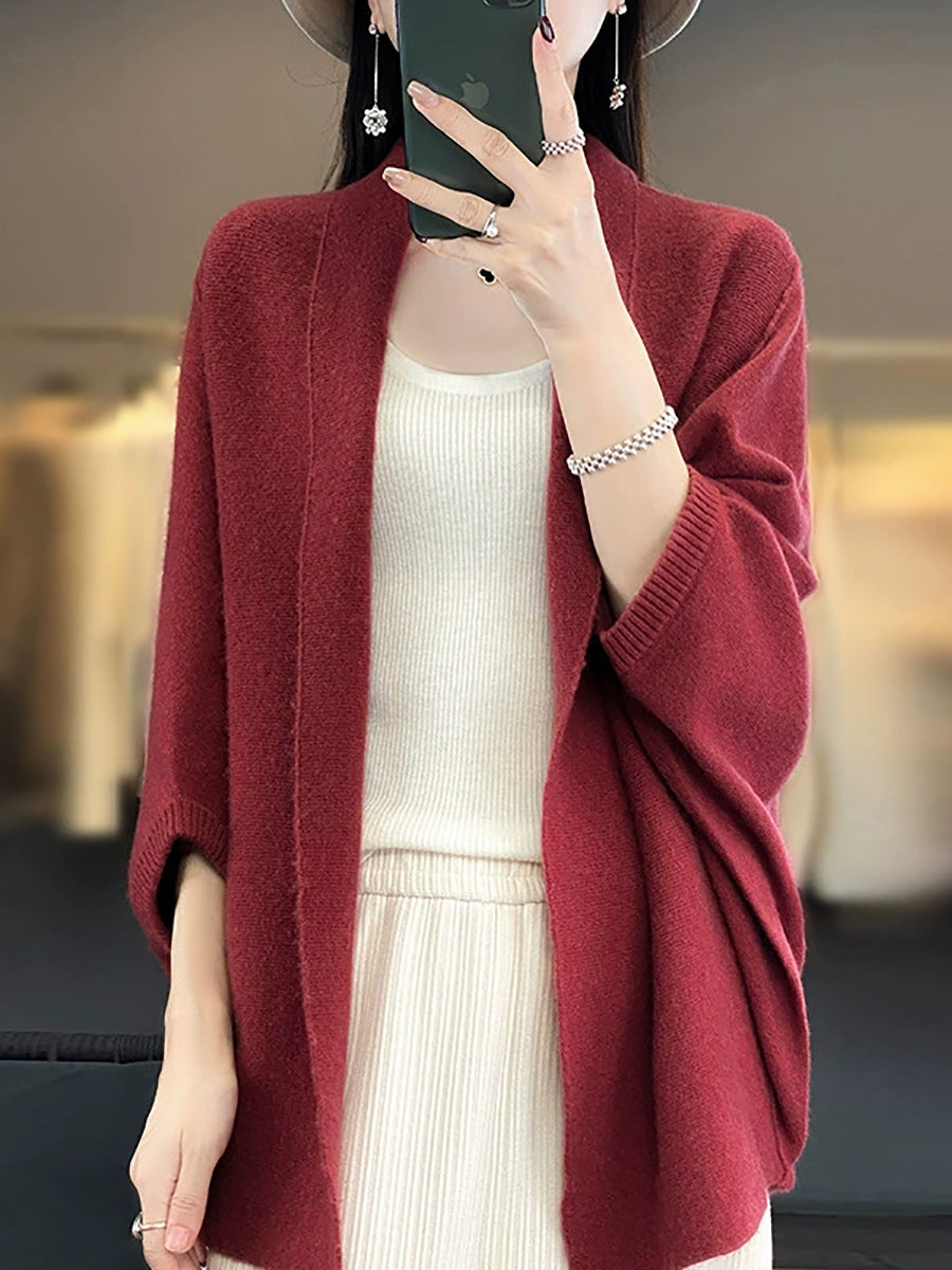 Women Autumn Artsy Pure Color Cardigan Wool Sweater