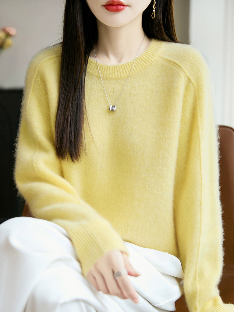 Women Autumn Artsy Pure Color O-Neck Sweater