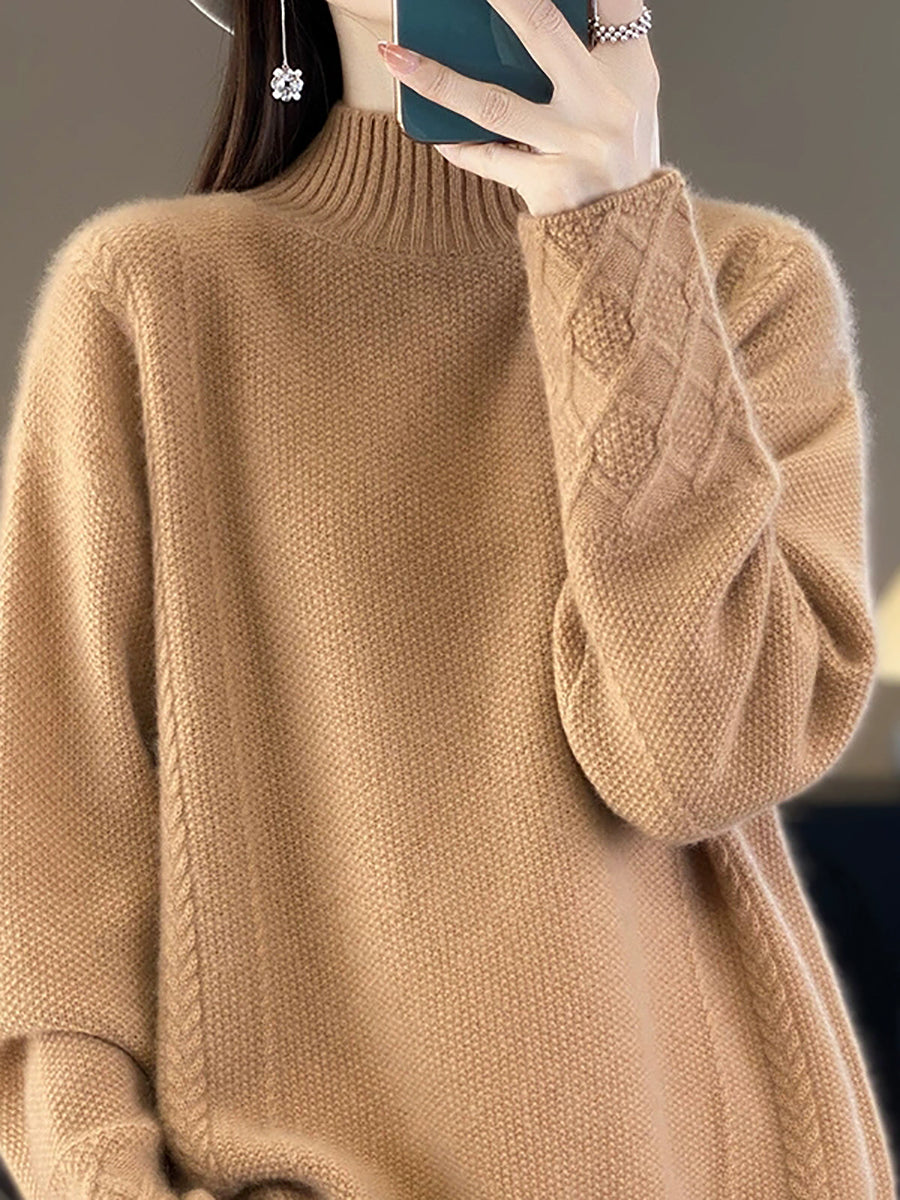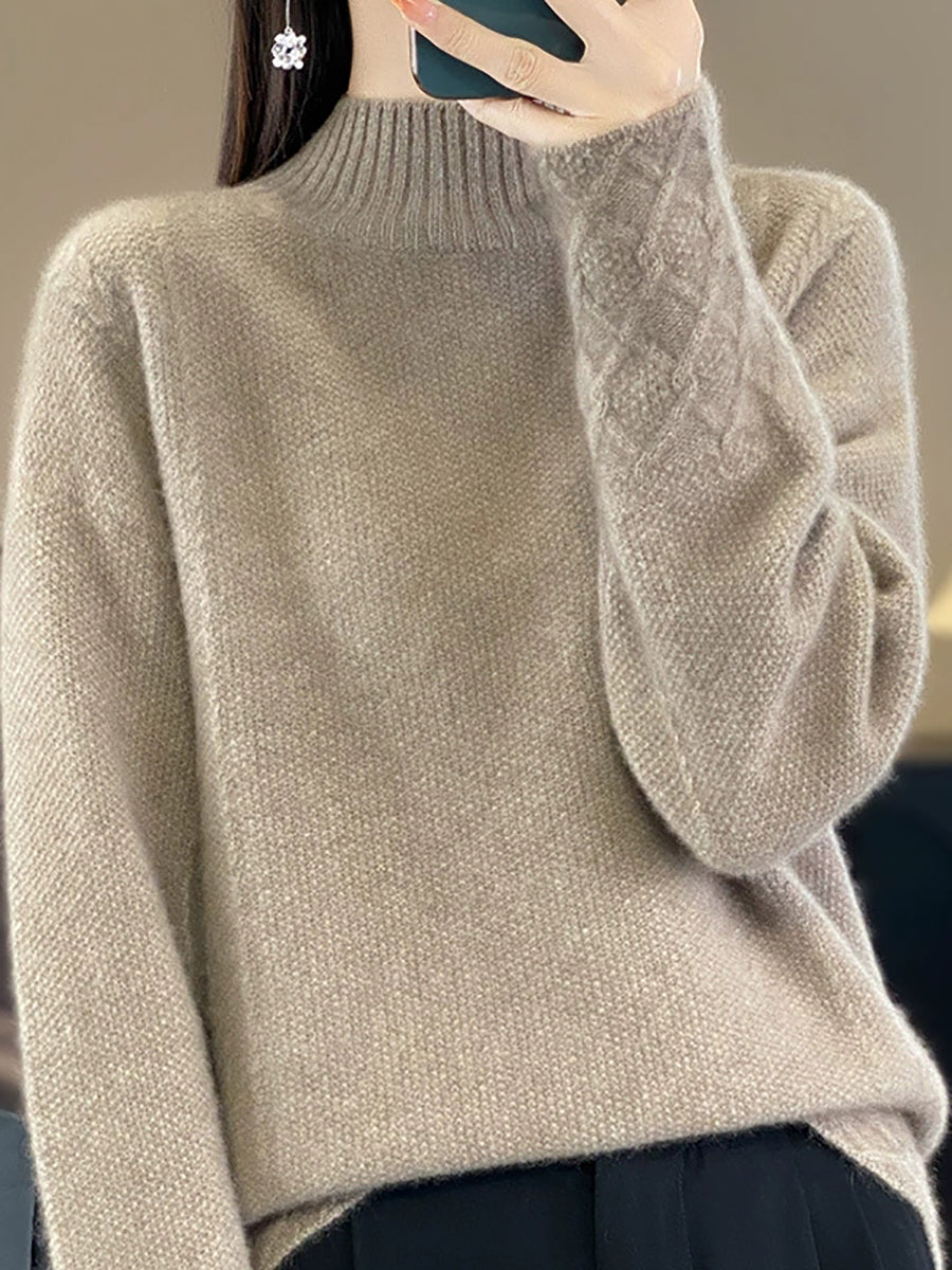Women Autumn Artsy Pure Color Wool Half-Turtleneck Sweater