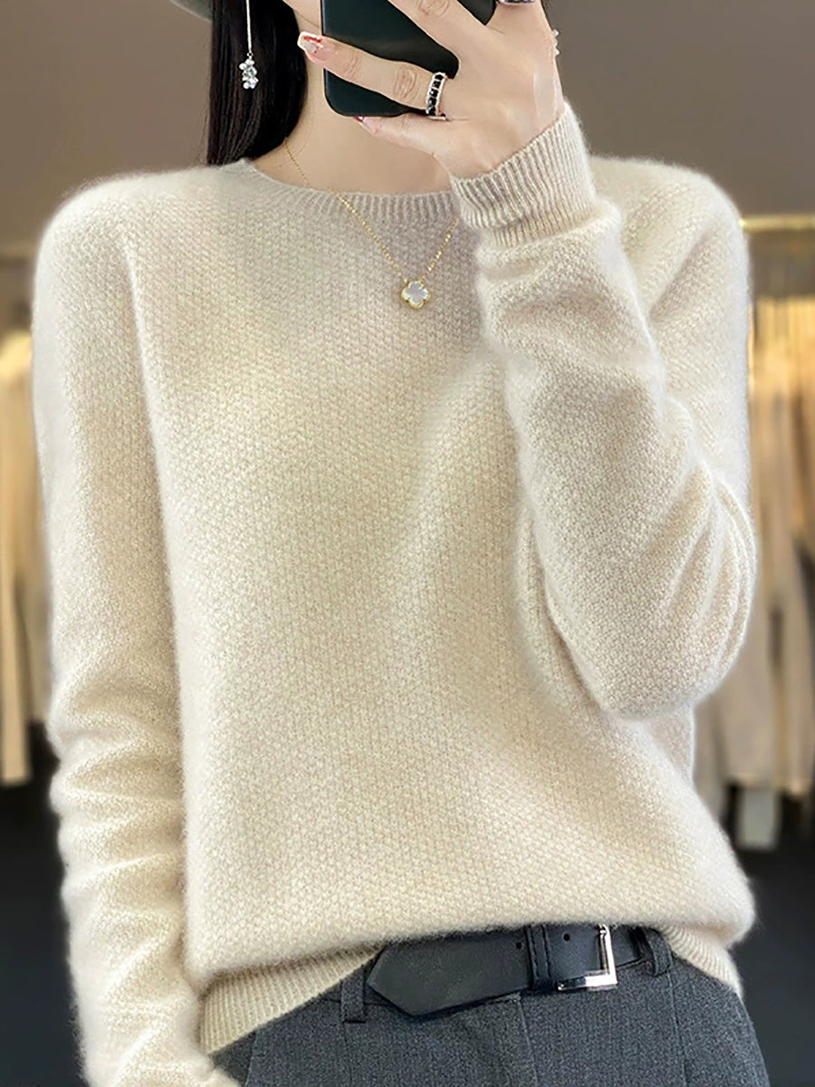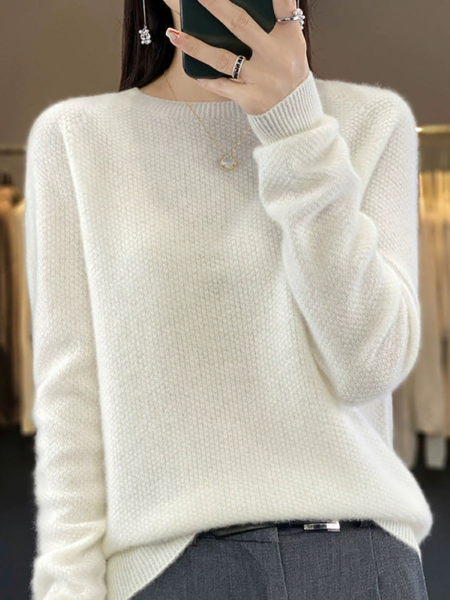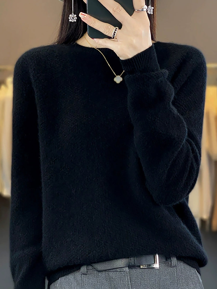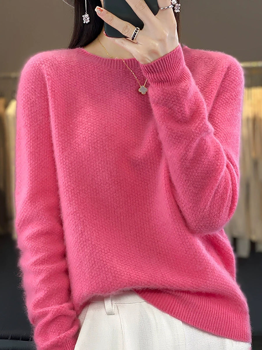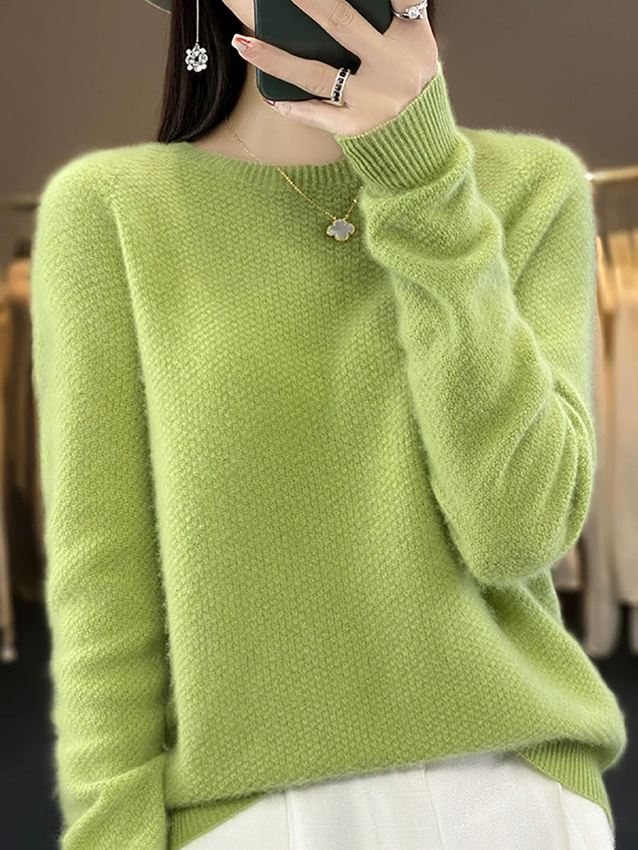 Women Autumn Artsy Pure Color Wool O-Neck Sweater