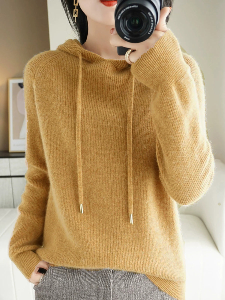 Women Autumn Casual Pure Color Hooded Sweater