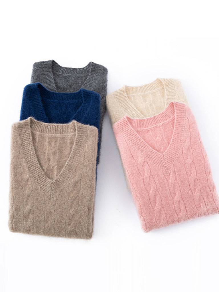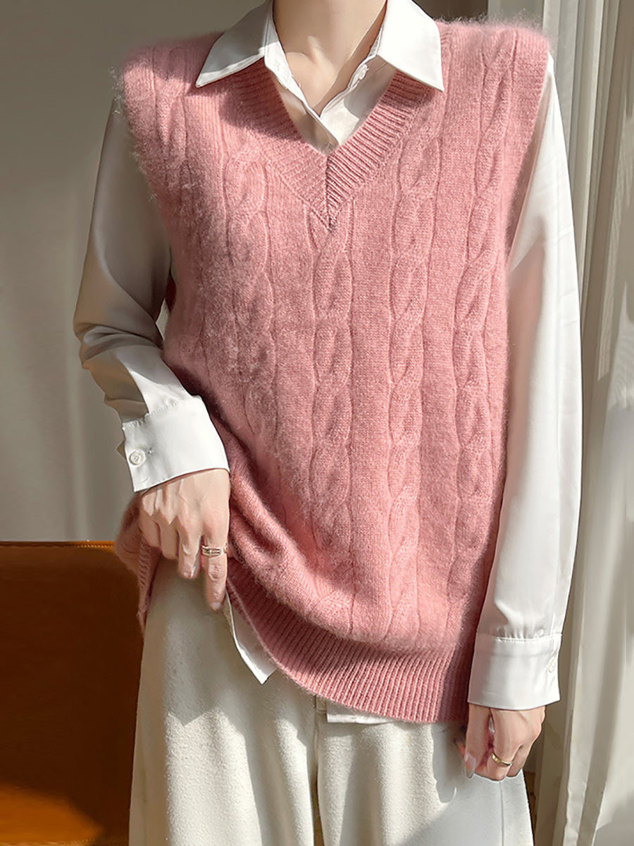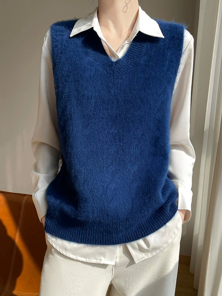 Women Autumn Casual Pure Color V-Neck Knitted Vest
