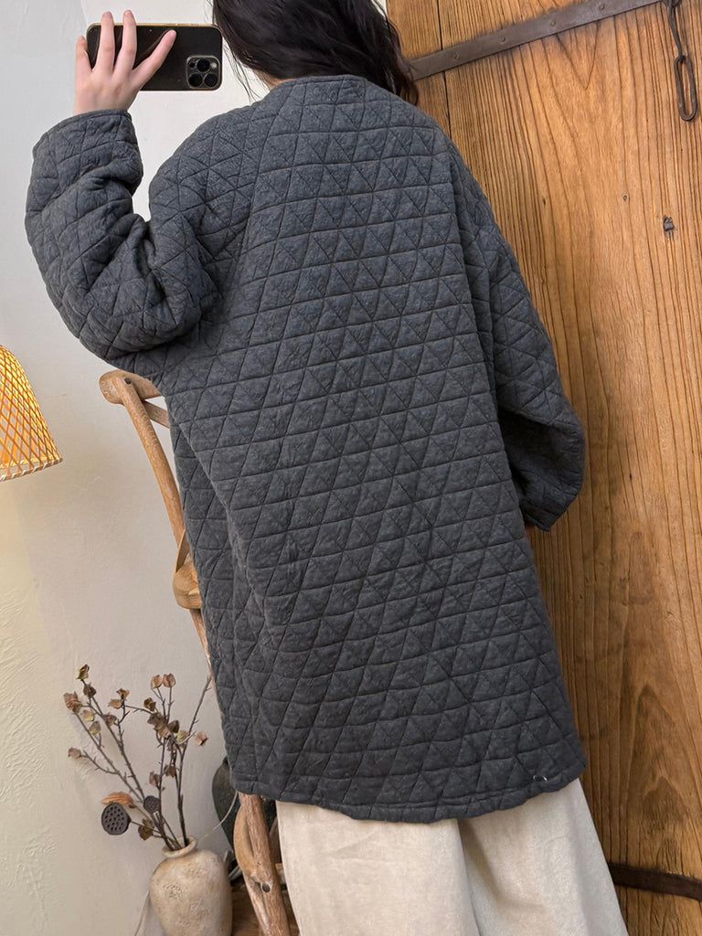Women Autumn Retro Pure Color Padded Trench Coat