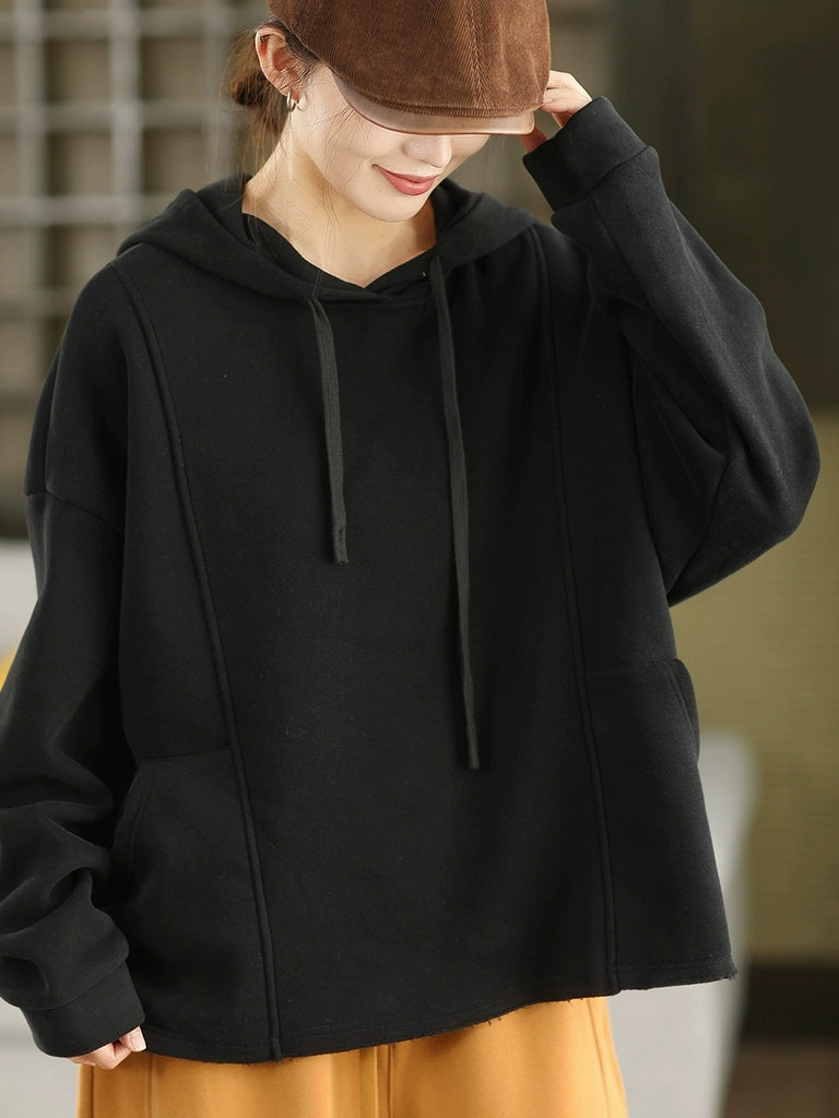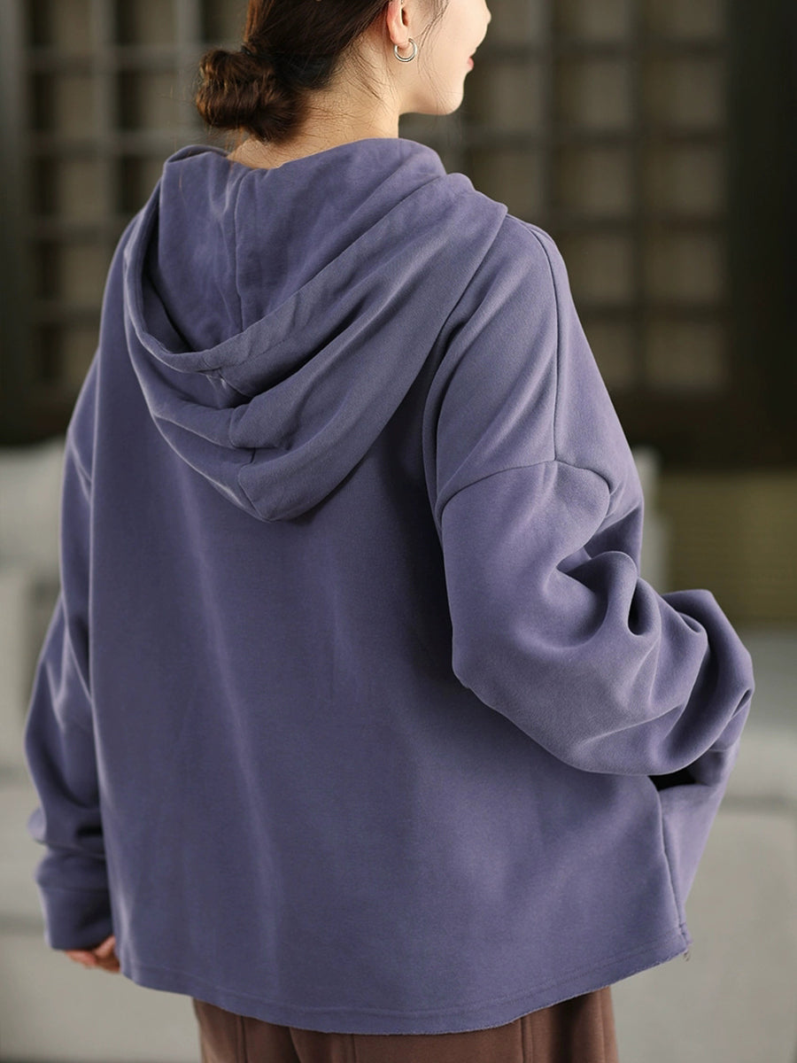 Women Casual Autumn 100%Cotton Fleece-lined Hoodie
