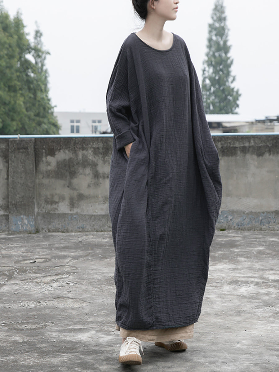 Expertly crafted from a blend of linen and cotton, this dress boasts a timeless solid pattern and features an O-neck collar and full raglan sleeves. The loose and vintage style adds a relaxed yet elegant touch to your wardrobe. Ideal for both spring and autumn, this dress is a must-have for any fashion-forward individual.