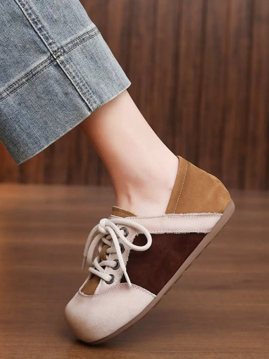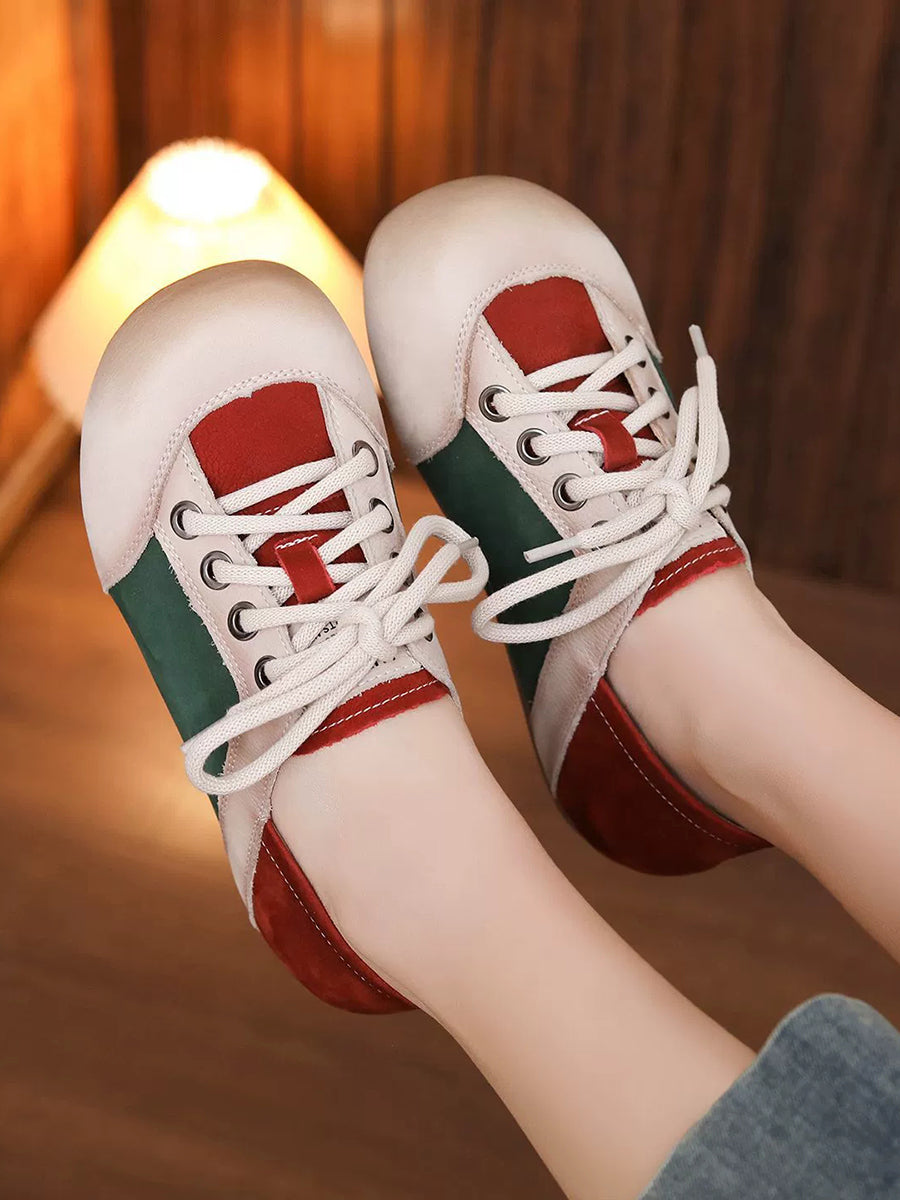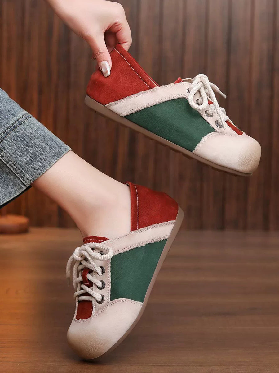 Women Casual Colorblock Genuine Leather Flat Shoes