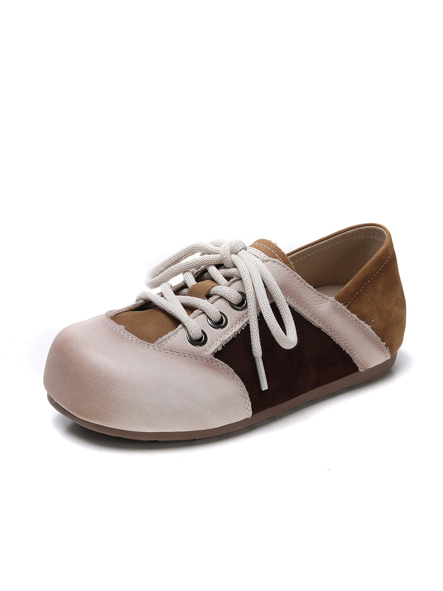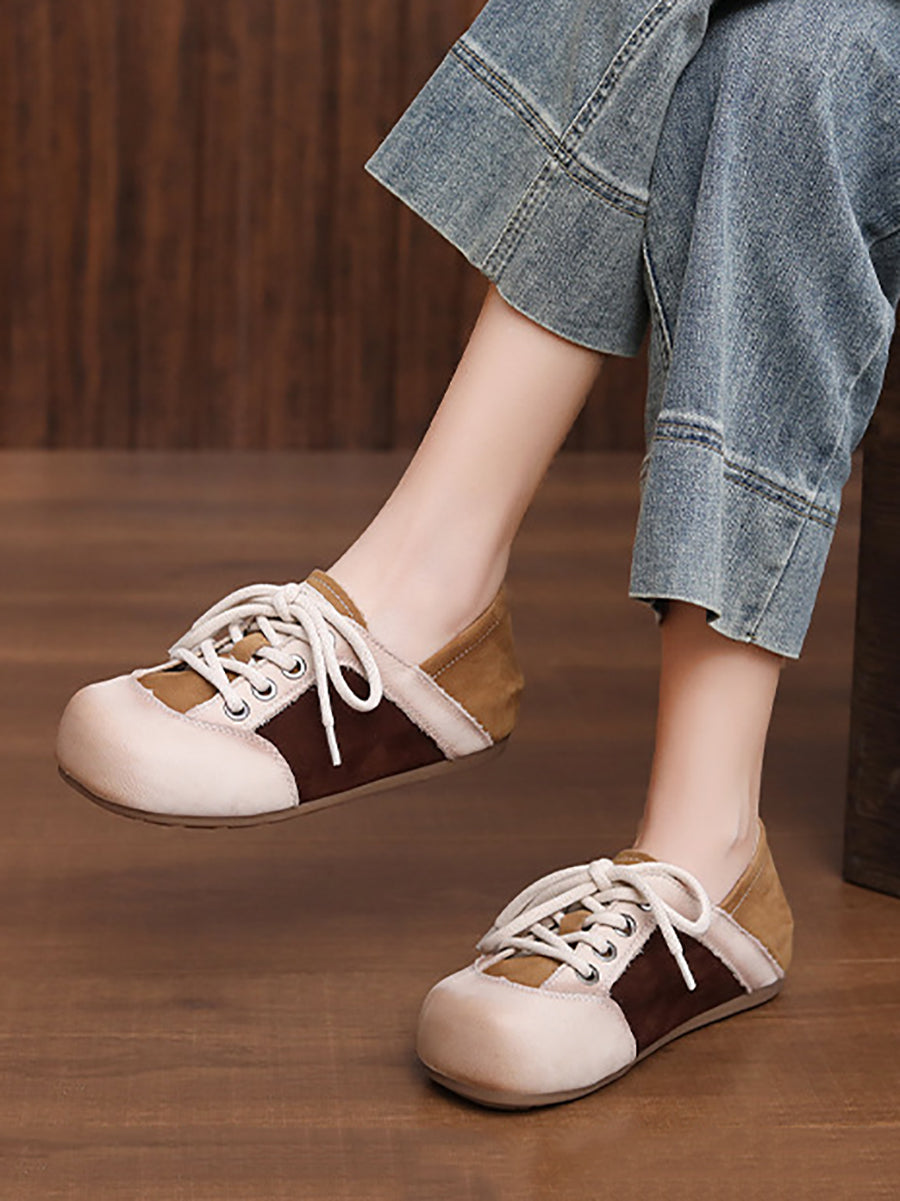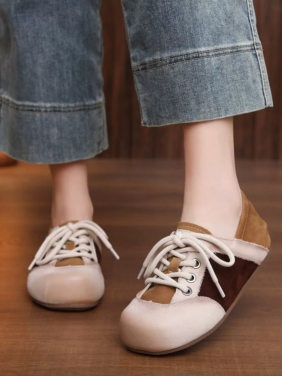 Women Casual Colorblock Genuine Leather Flat Shoes
