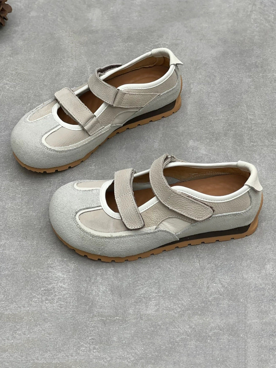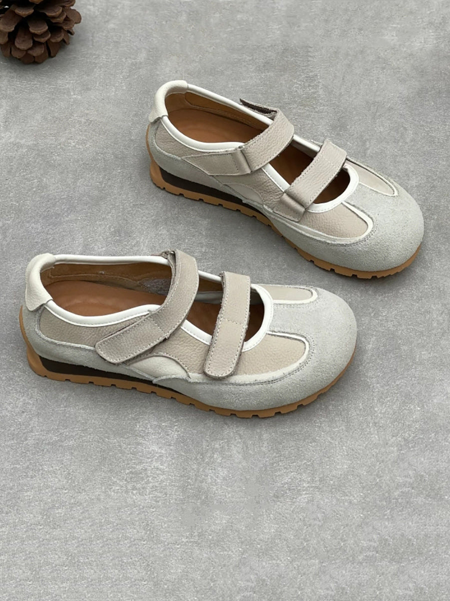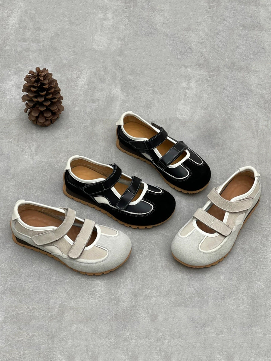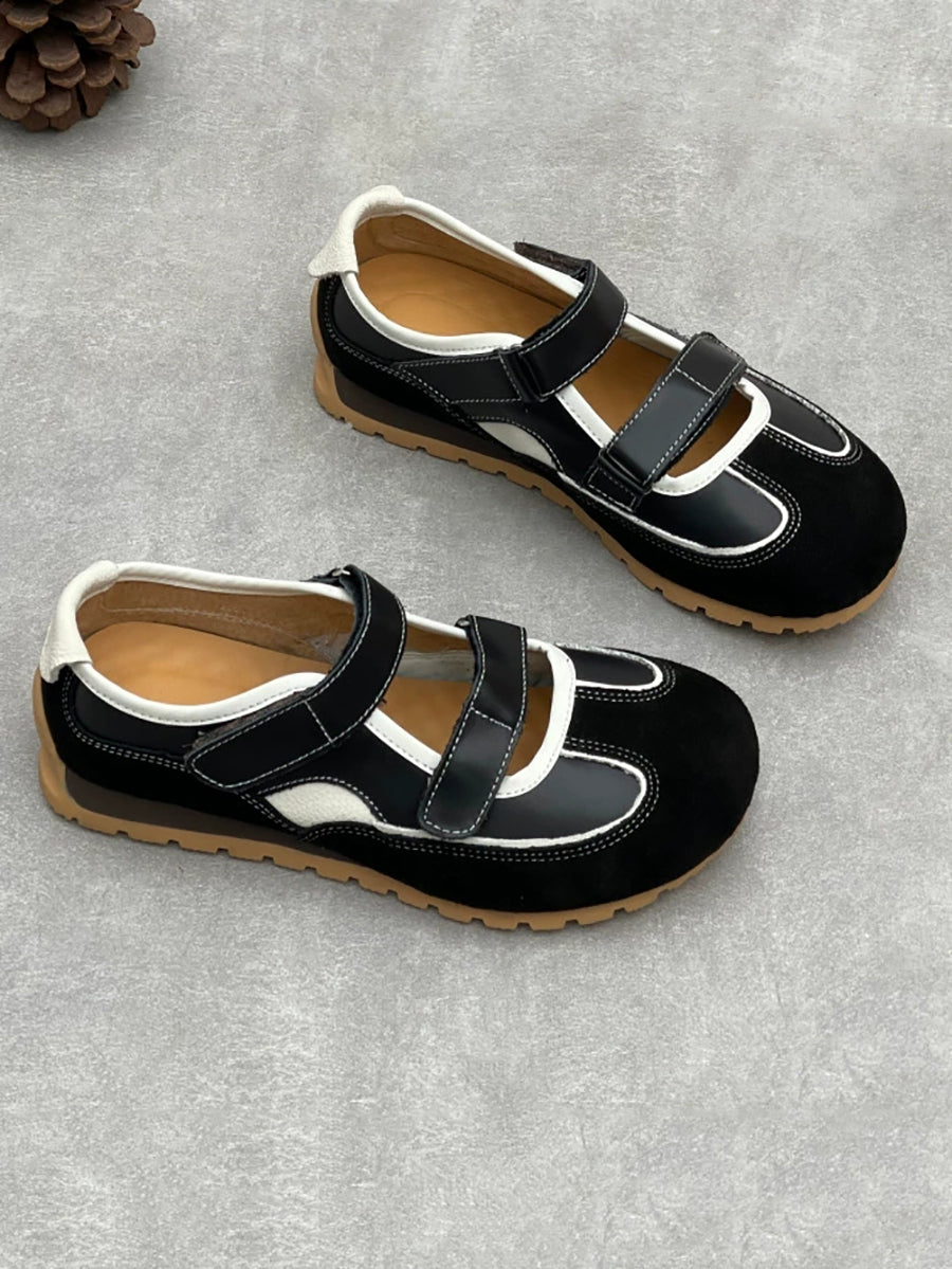 Women Casual Genuine Leather Spliced Low Heel Shoes