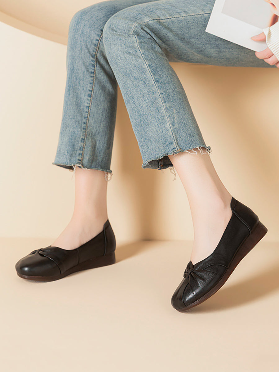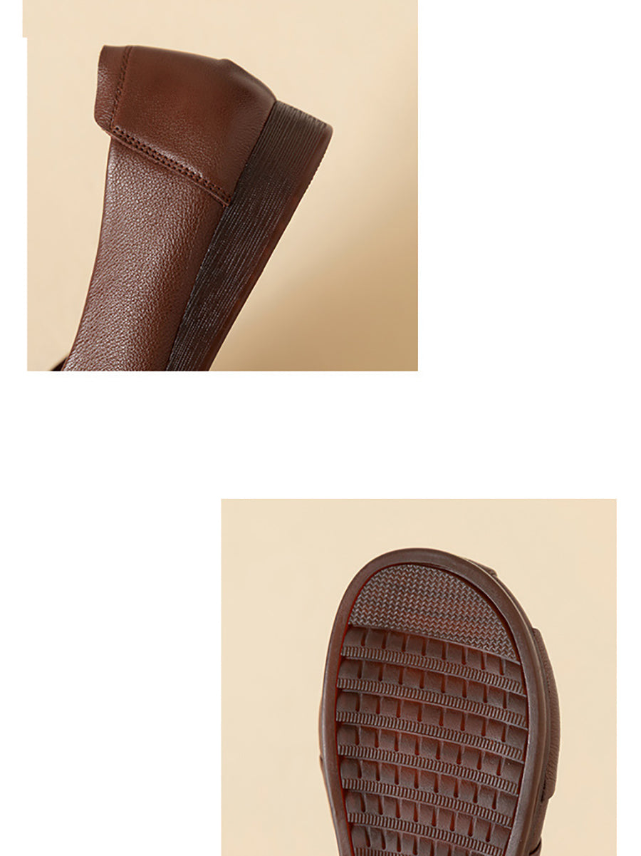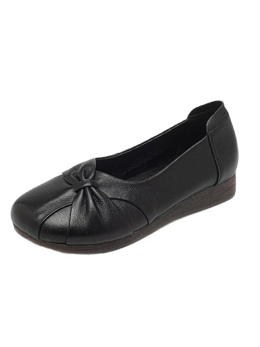 Women Casual Pure Color Leather Low Heel Shoes