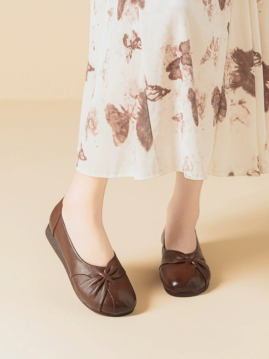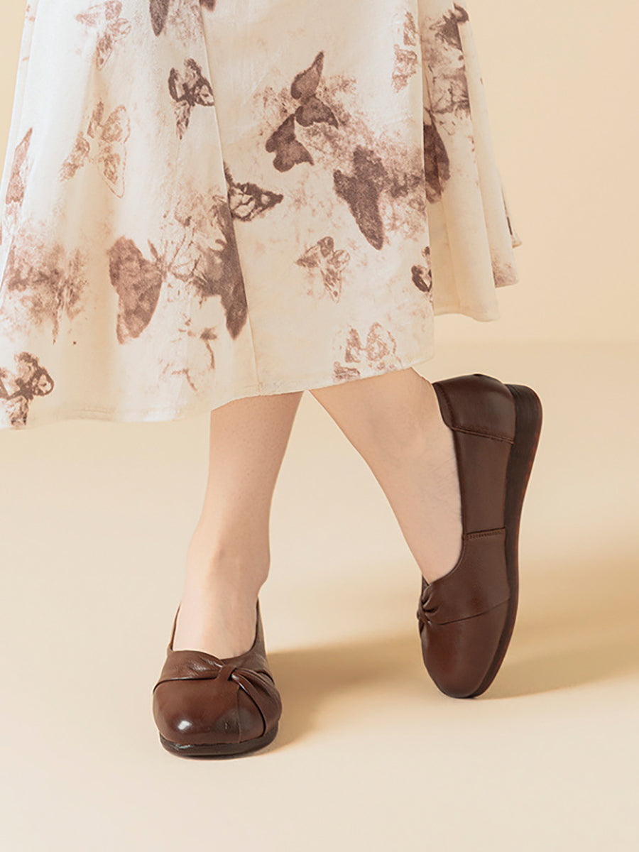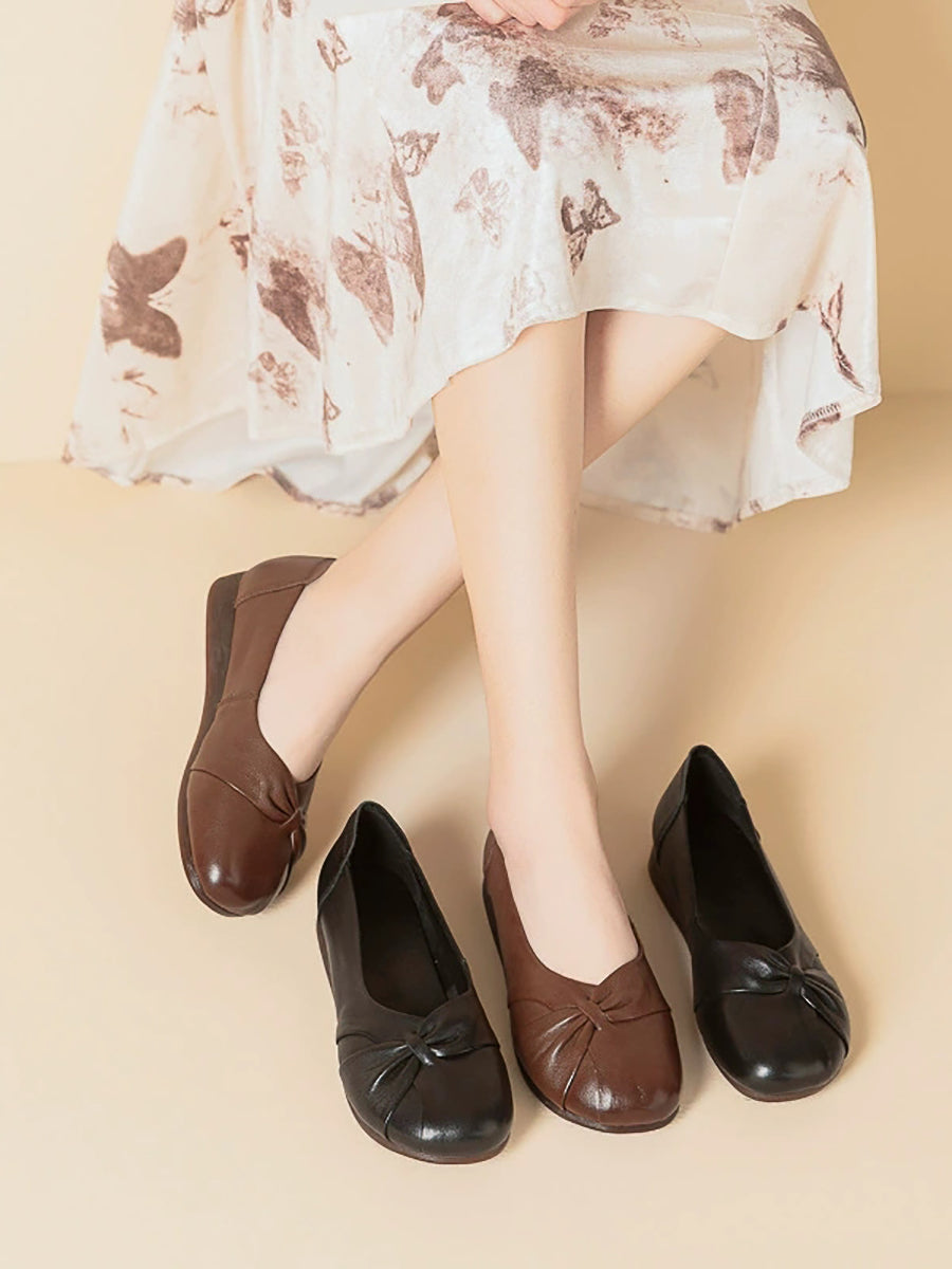 Women Casual Pure Color Leather Low Heel Shoes