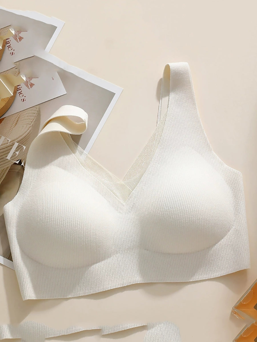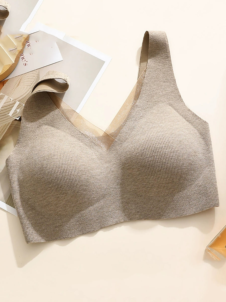 Women Casual Pure Color One-piece Wireless Bra
