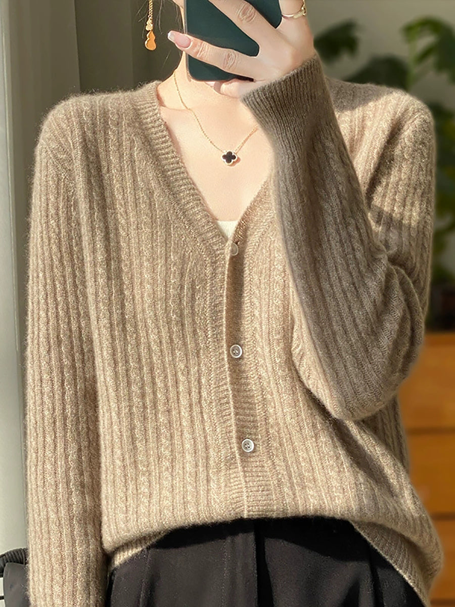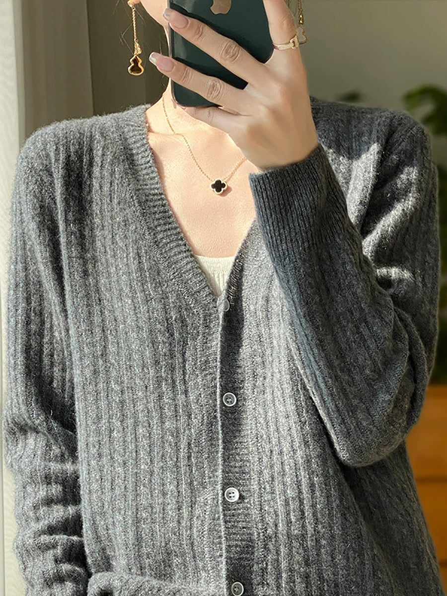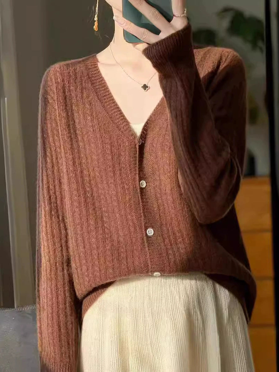 Women Casual Spring Pure Color V-Neck Sweater
