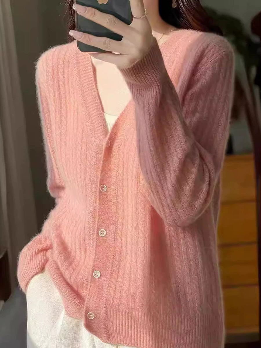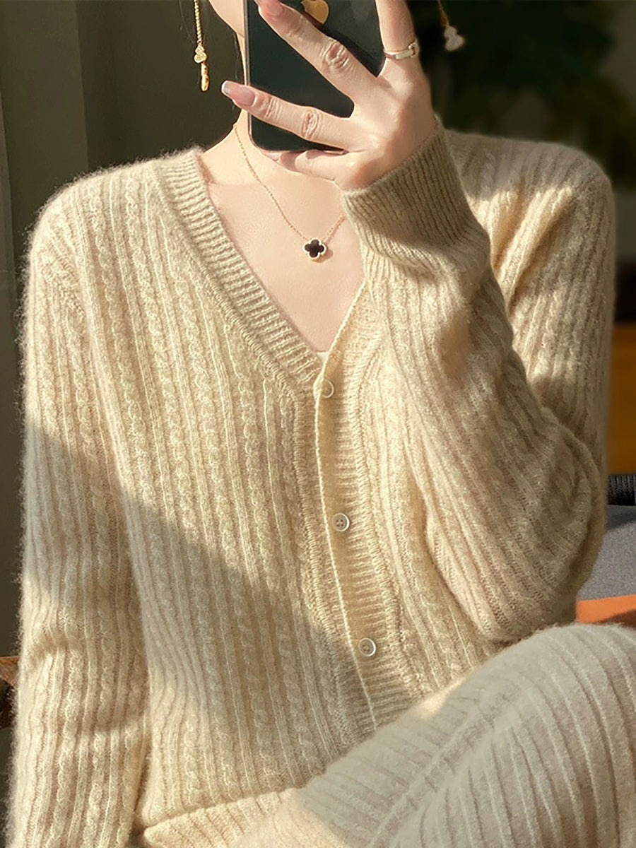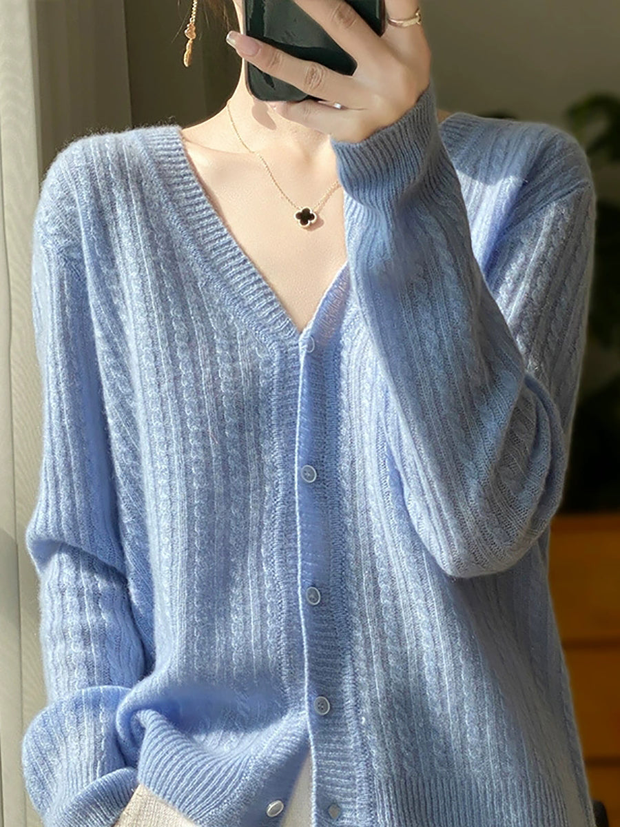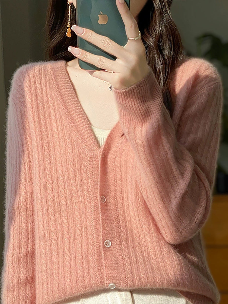Women Casual Spring Pure Color V-Neck Sweater