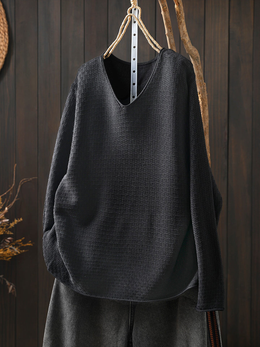 Women Casual Spring Pure Color V-Neck Sweater