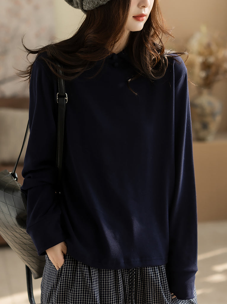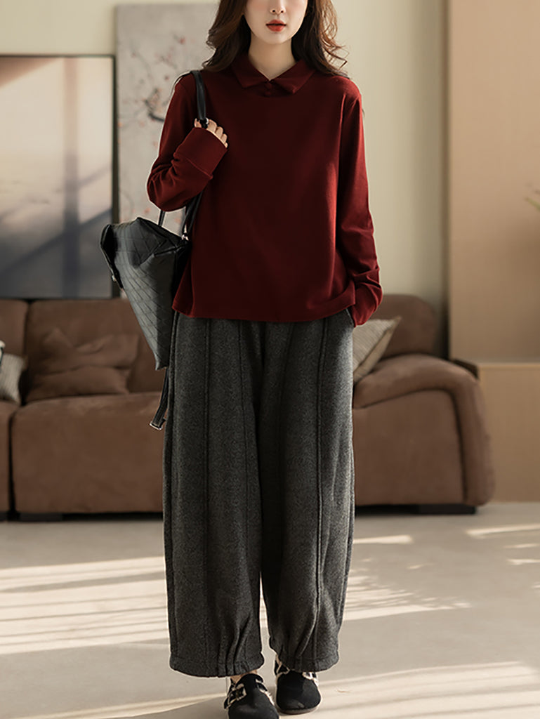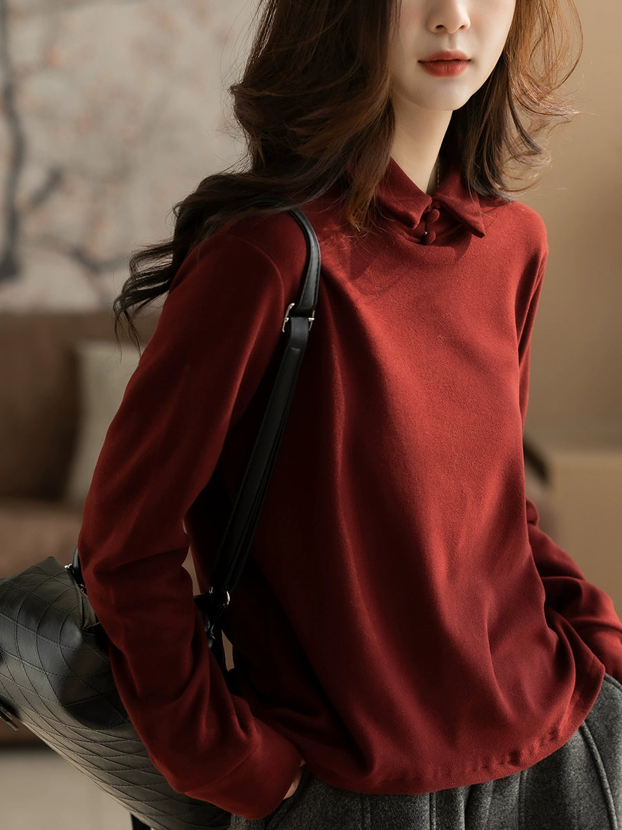 Women Casual Winter Pure Color Turn-down Collar Shirt