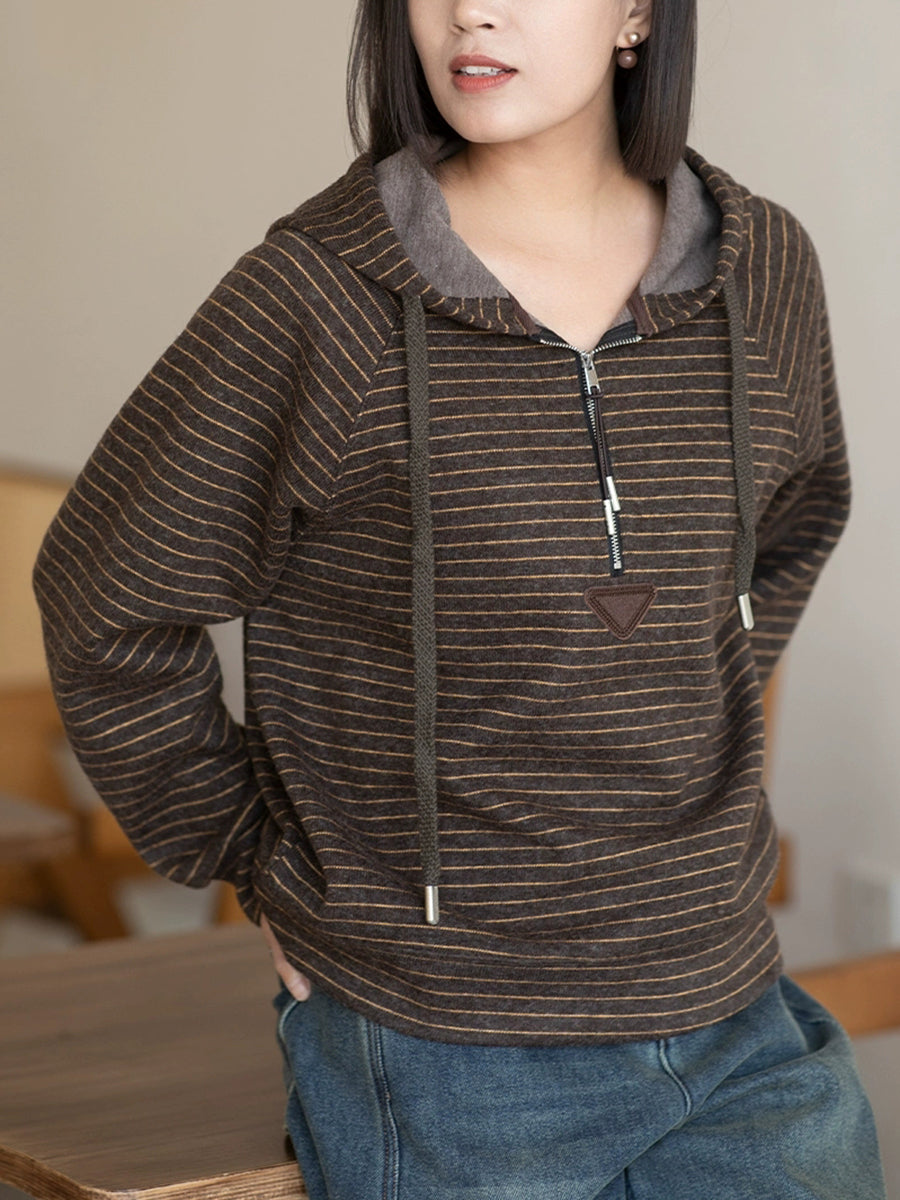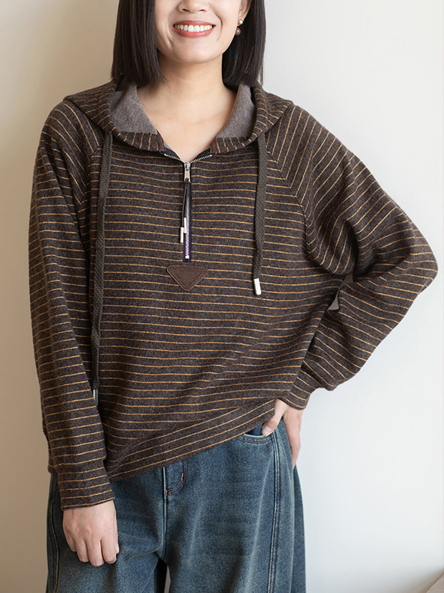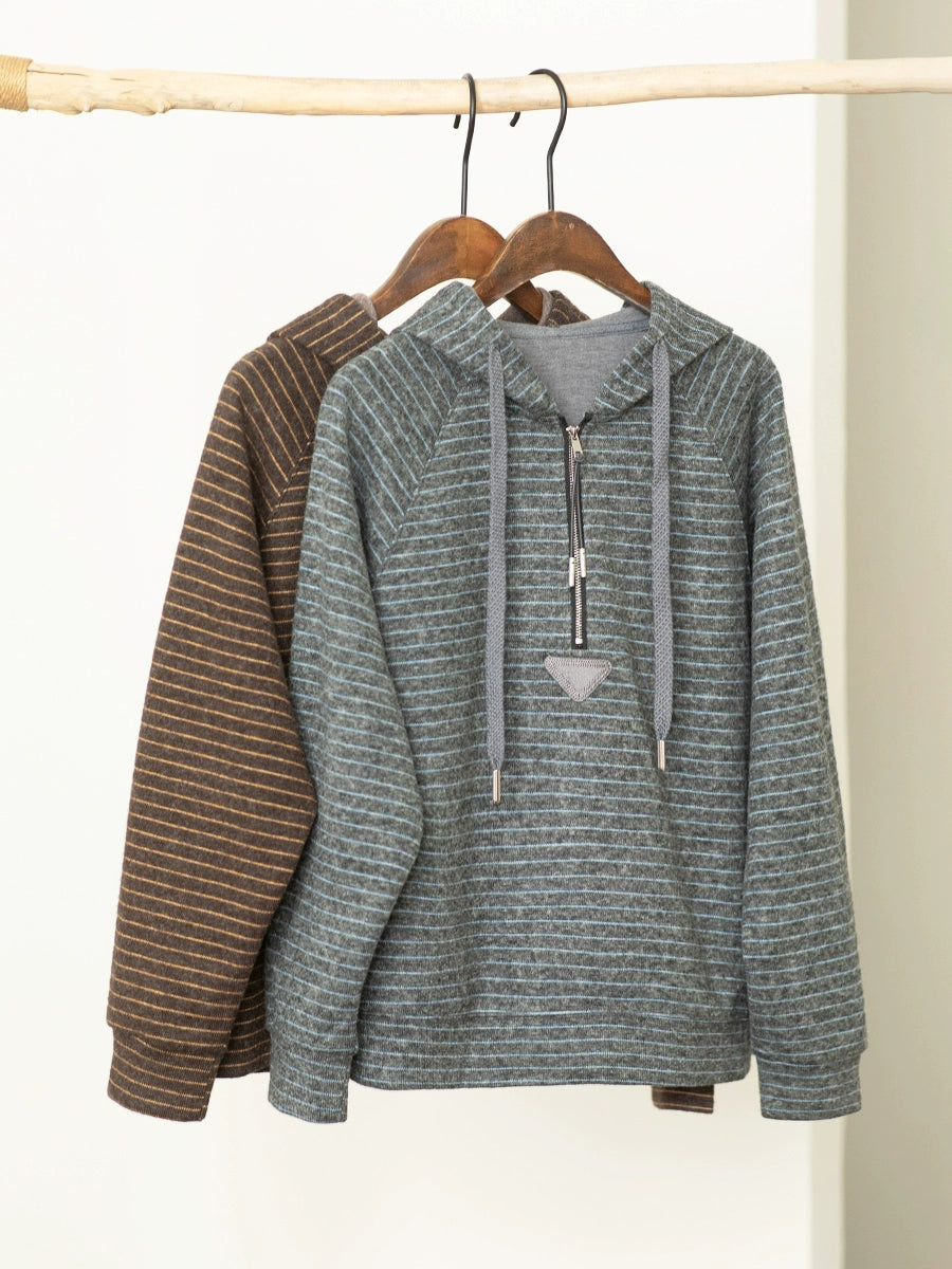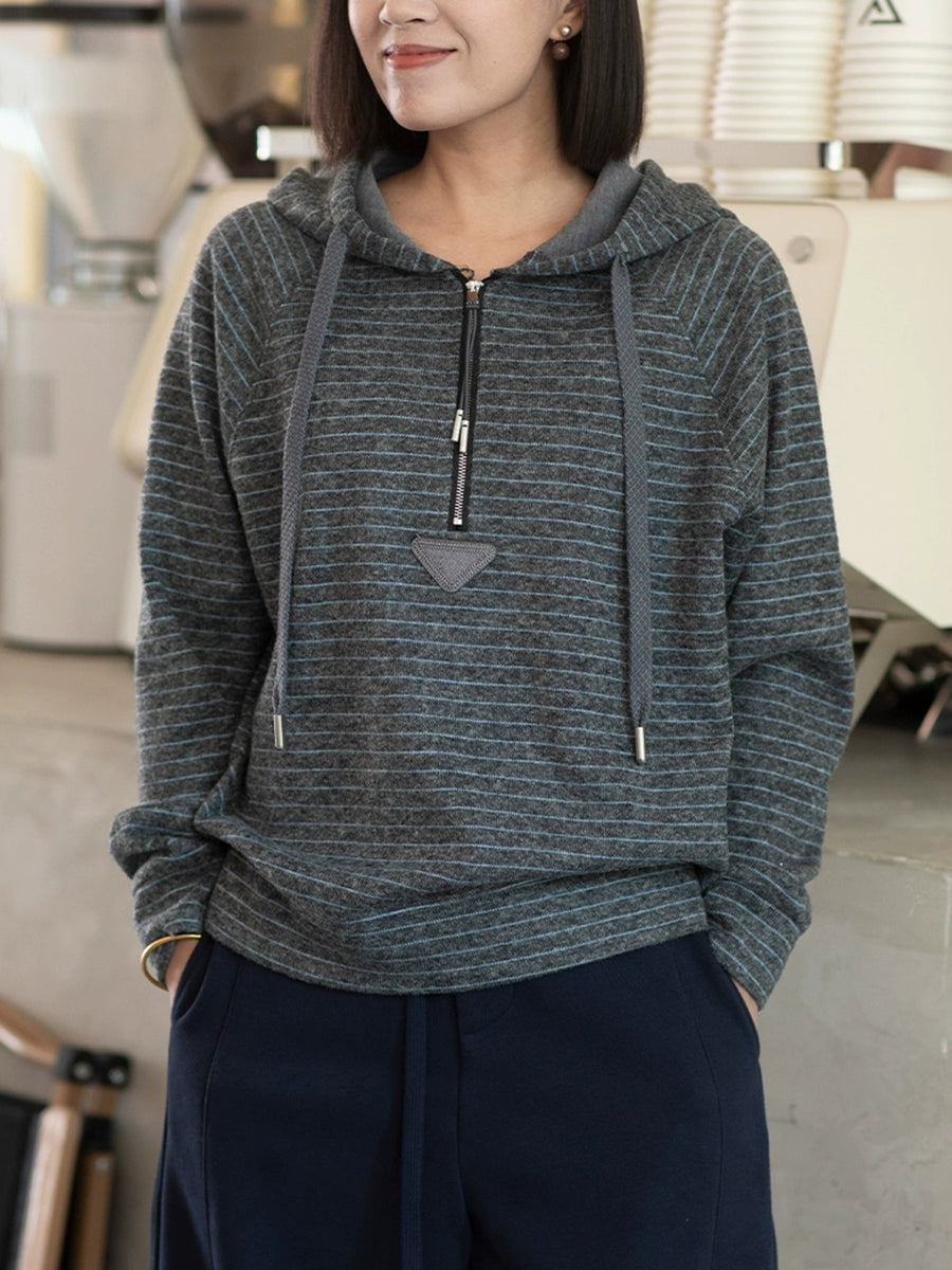 Women Casual Winter Warm Stripe Hoodie