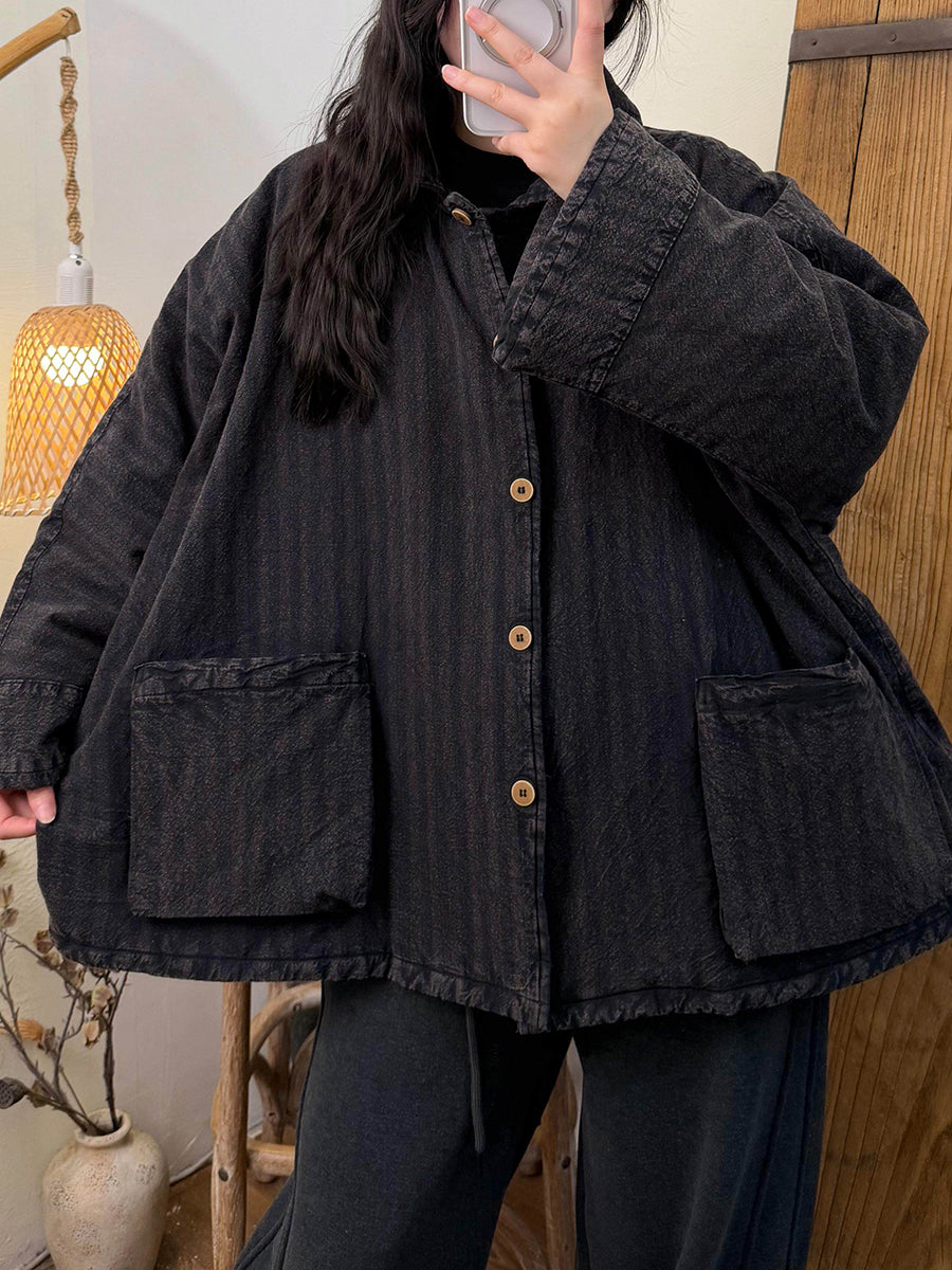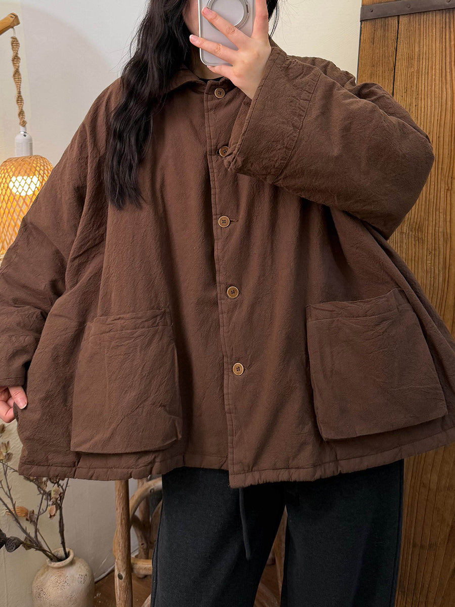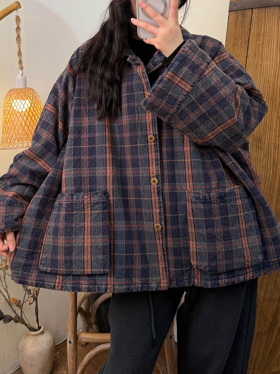 Women Retro Plaid Turn-down Collar Coat
