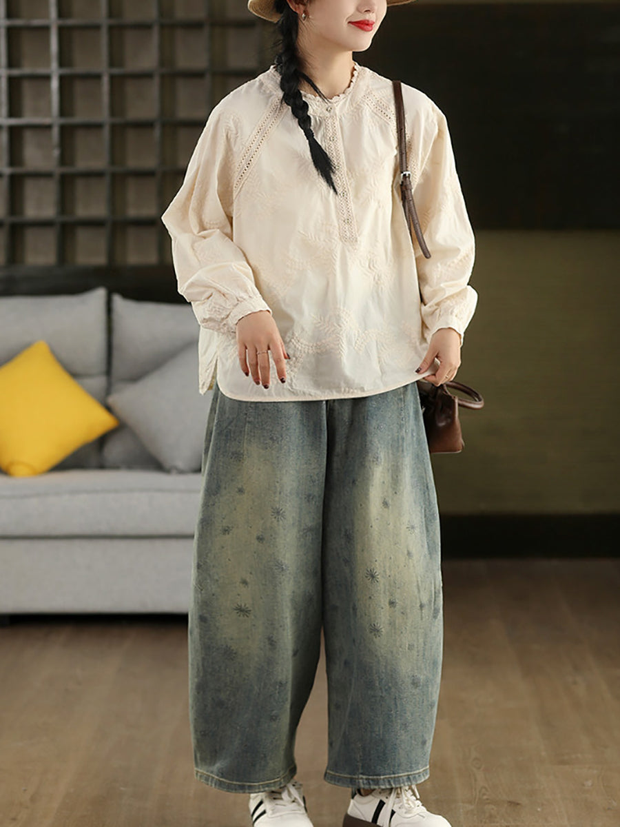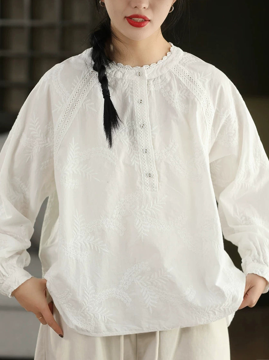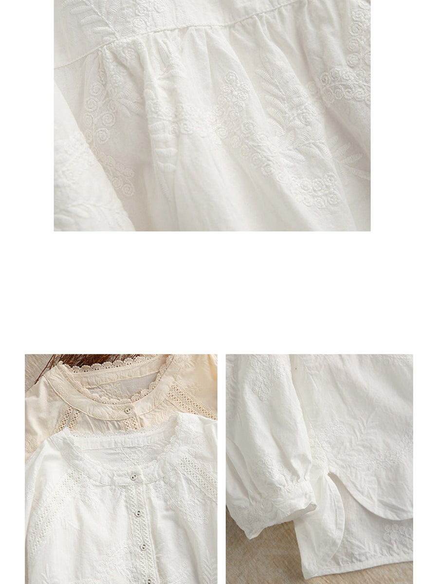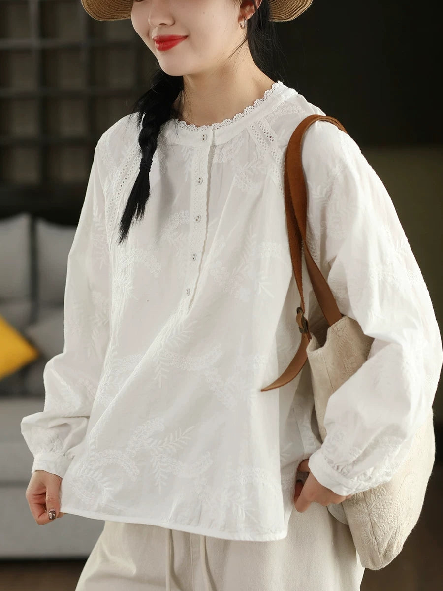 Women Spring Artsy Embroidery 100%Cotton Shirt