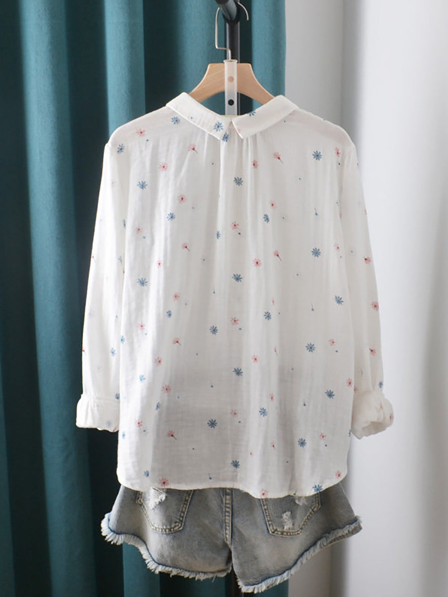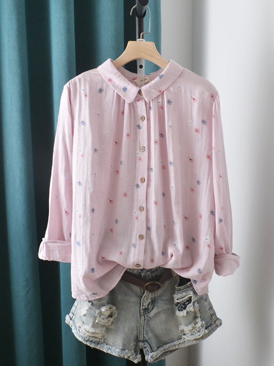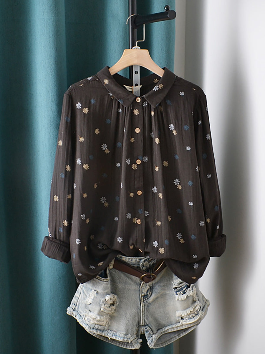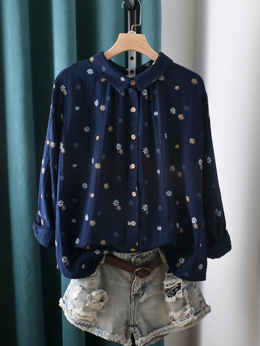 Women Spring Artsy Flower Cotton Shirt