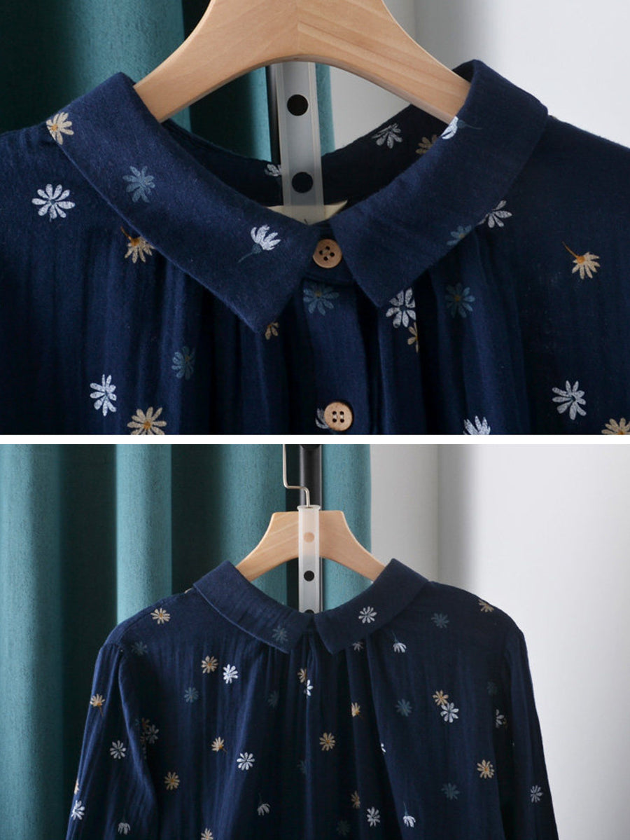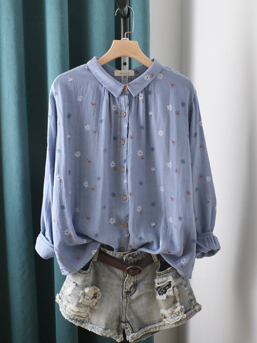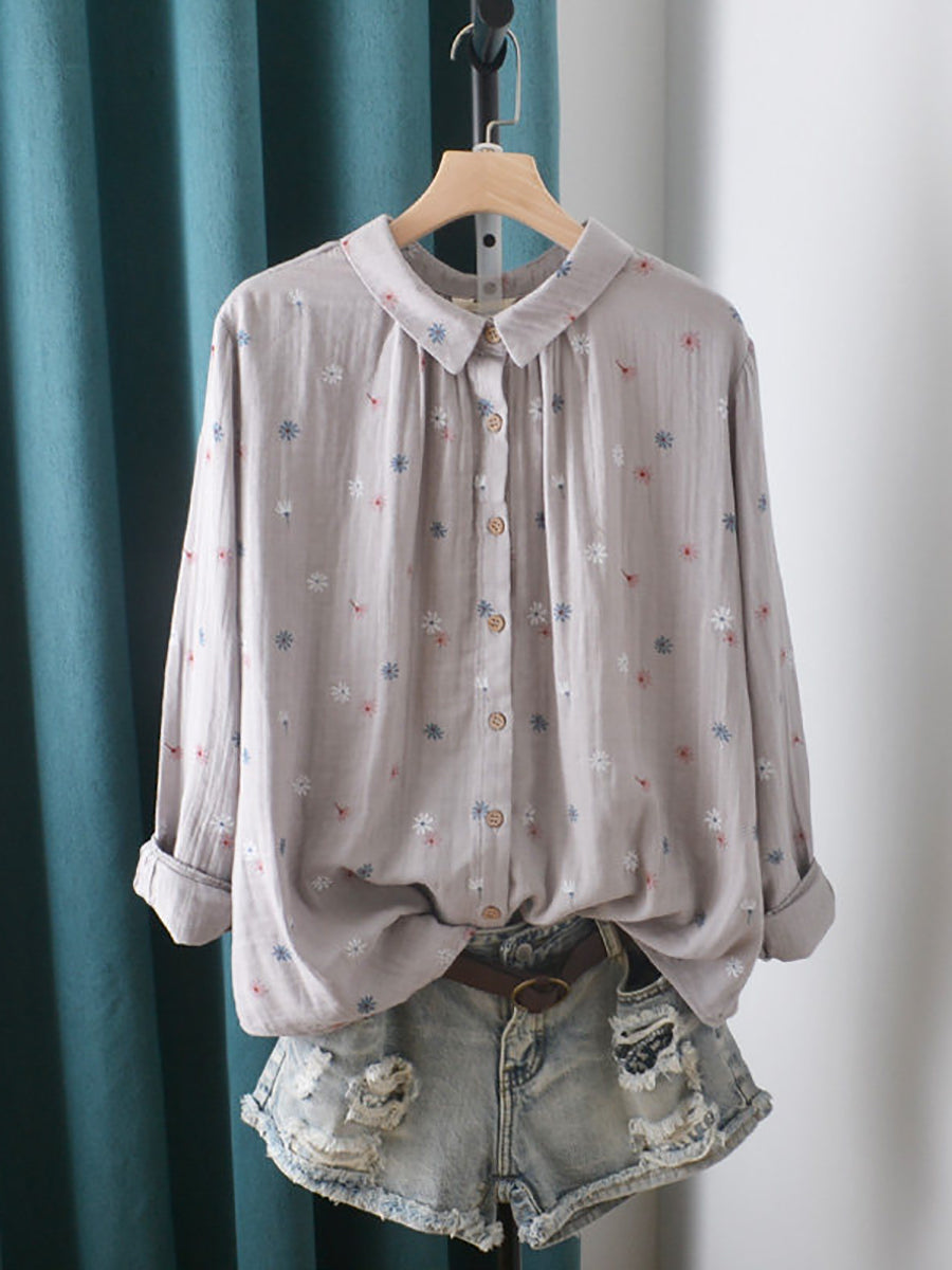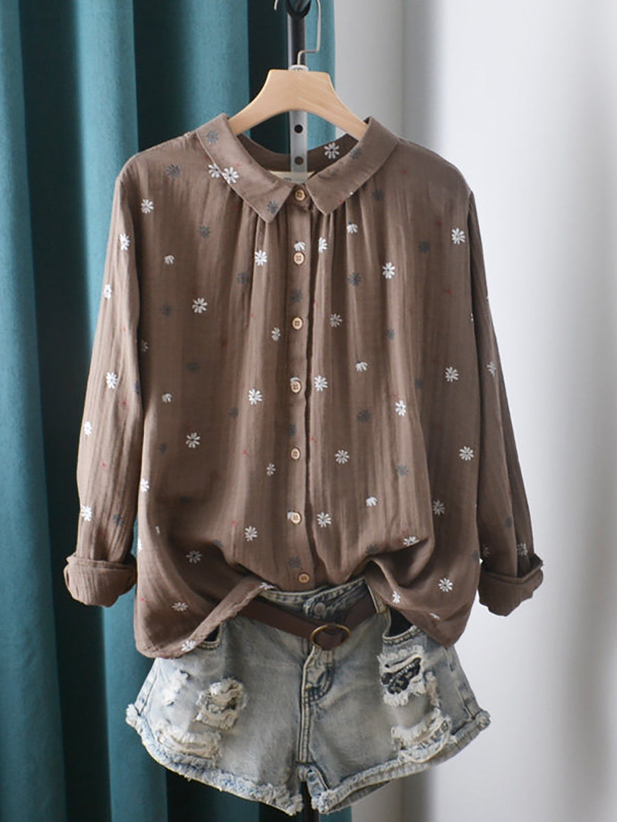 Women Spring Artsy Flower Cotton Shirt