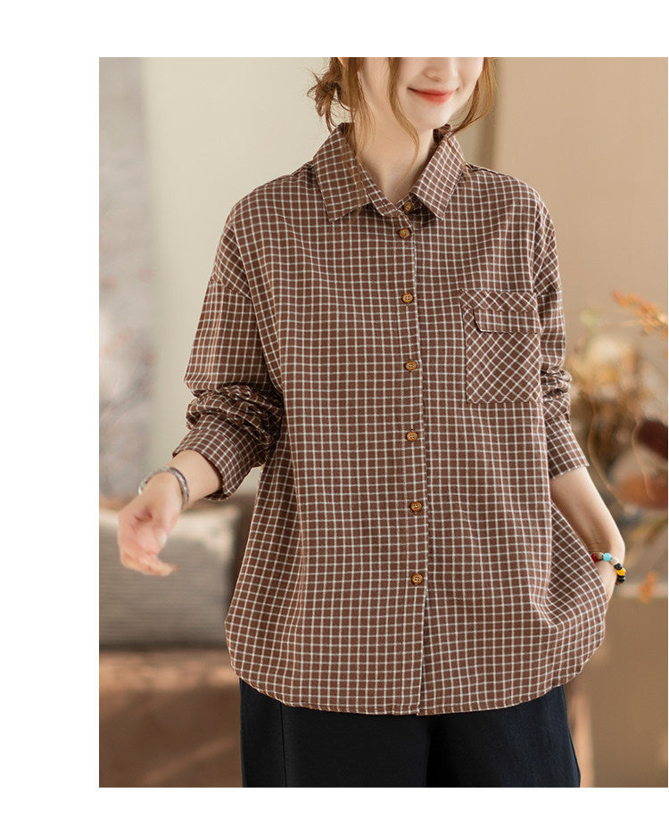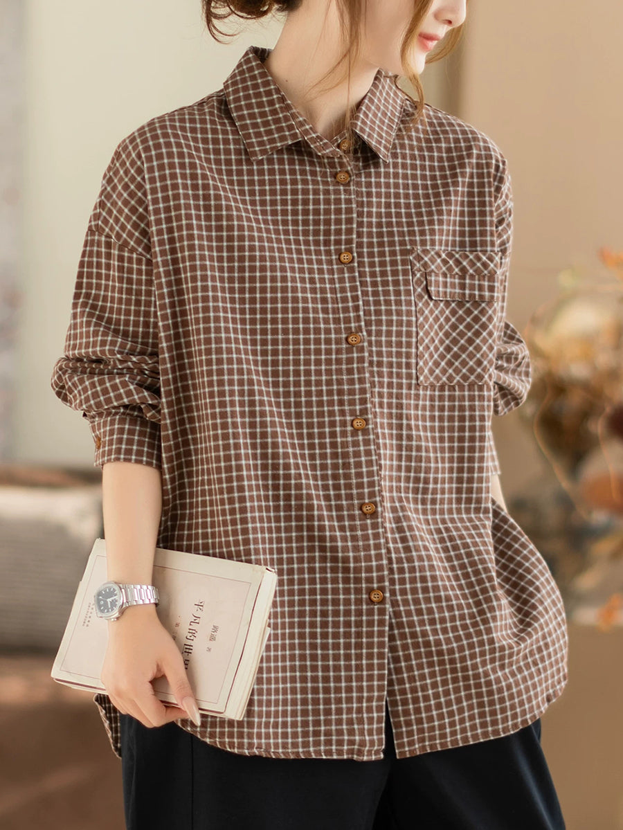 Women Spring Artsy Lattice Turn-down Colalr Shirt