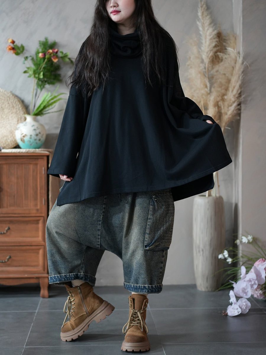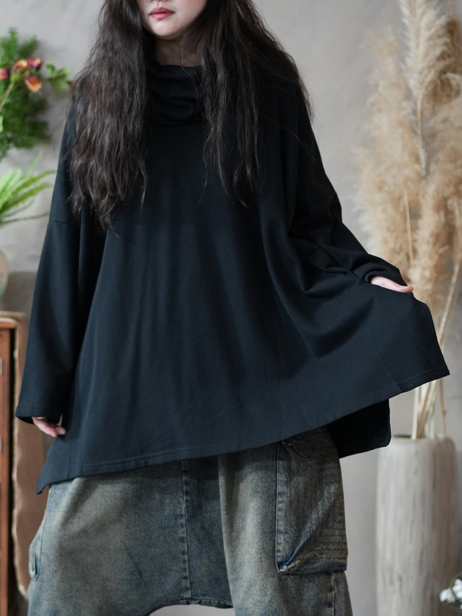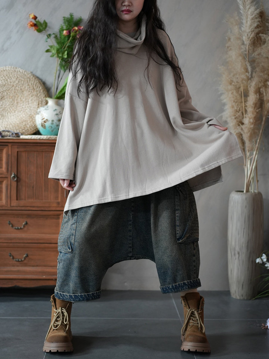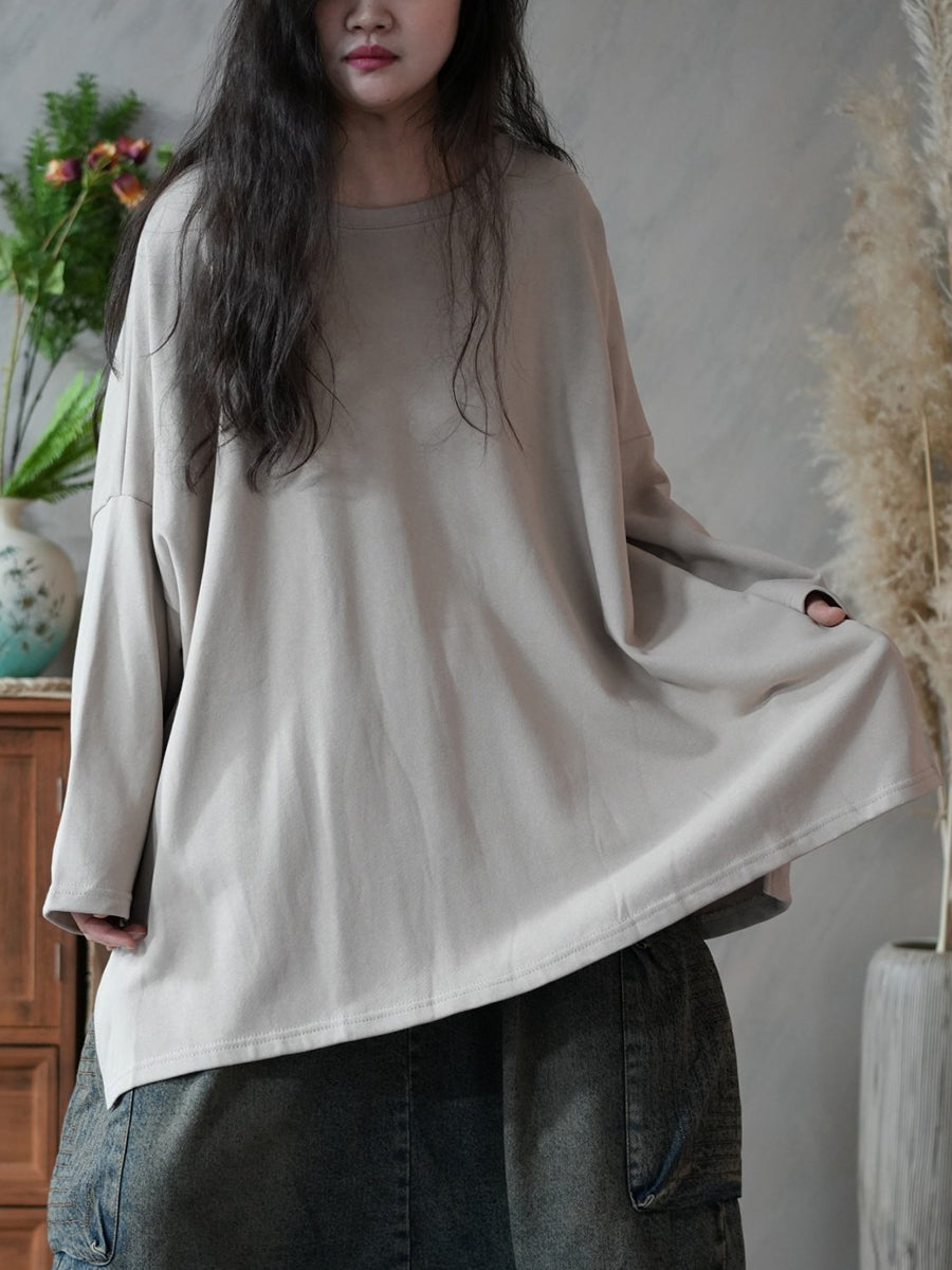 Women Spring Artsy Pure Color 100%Cotton Hoodie