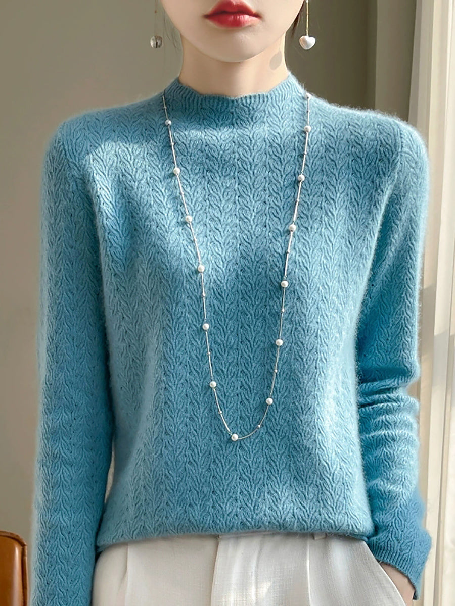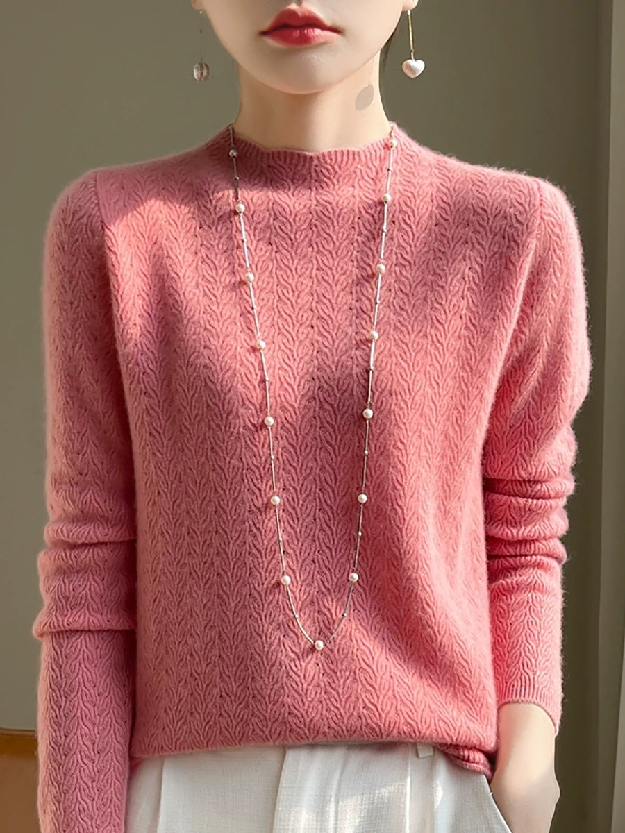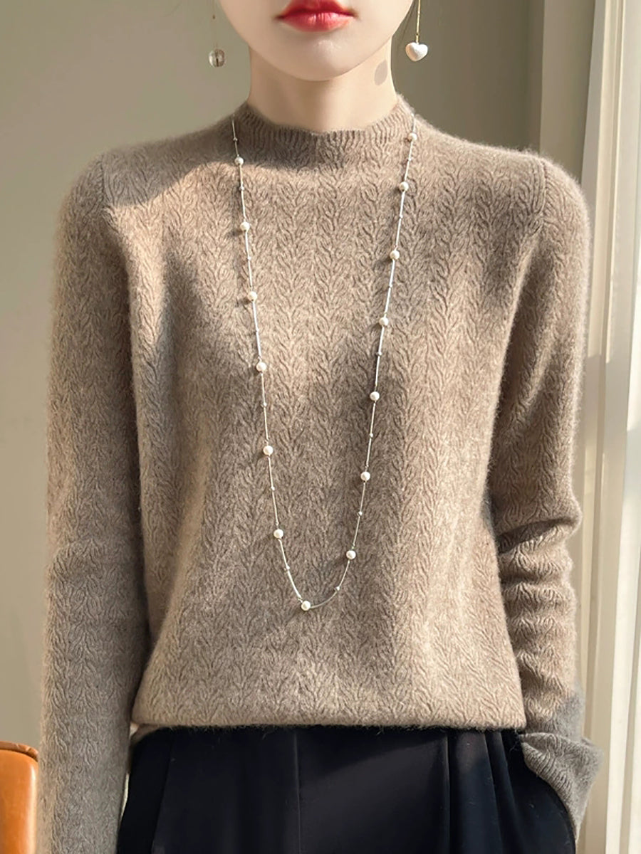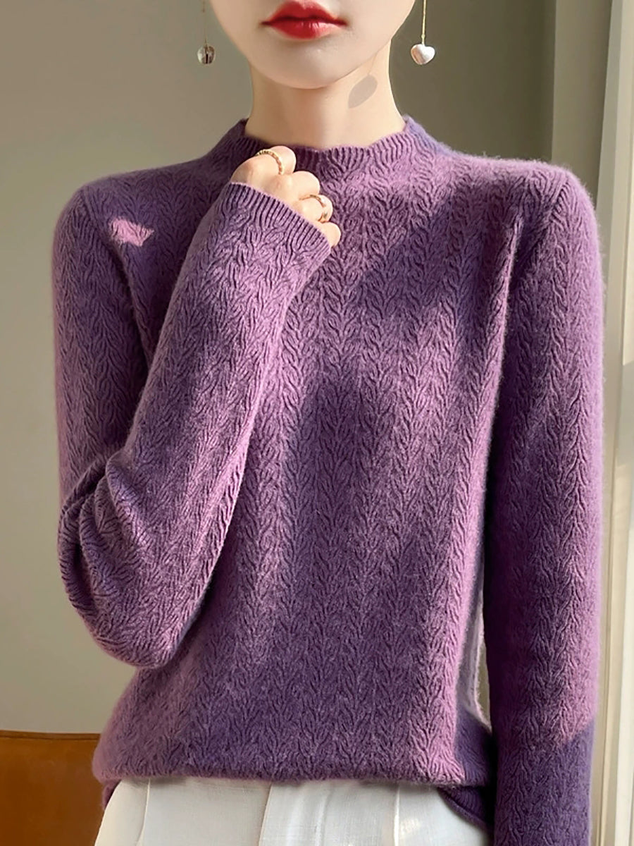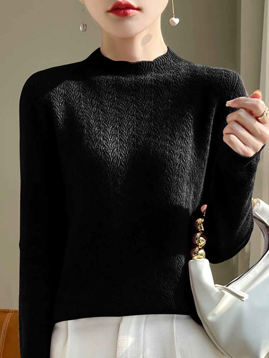 Women Spring Artsy Pure Color Half-turtleneck Sweater
